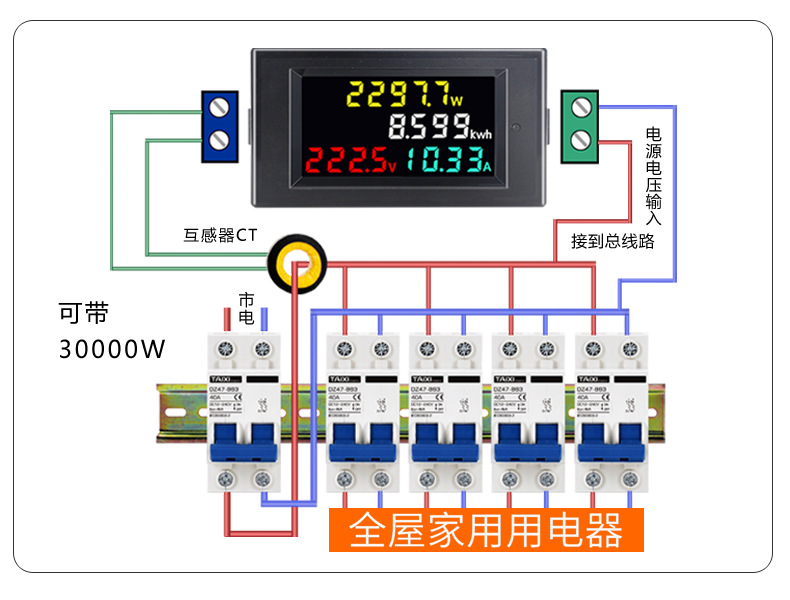 스마트 미터 단상 전력량계 전력계 AC 디지털 디스플레이 전압계 전류계 변압기 d69-2049스토어 가기