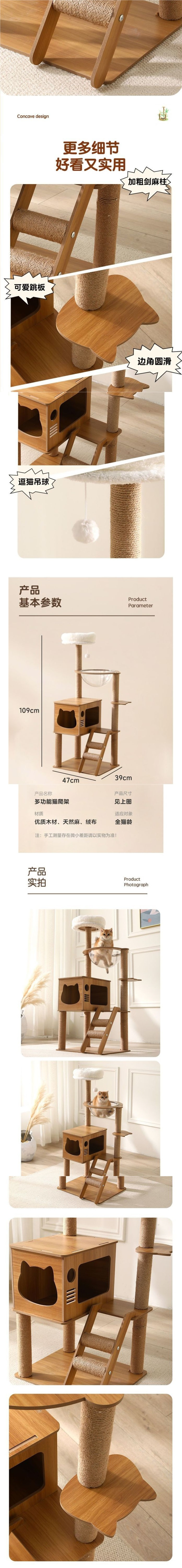 • 다층 고양이 둥지 등반 프레임(사이잘 스타일)