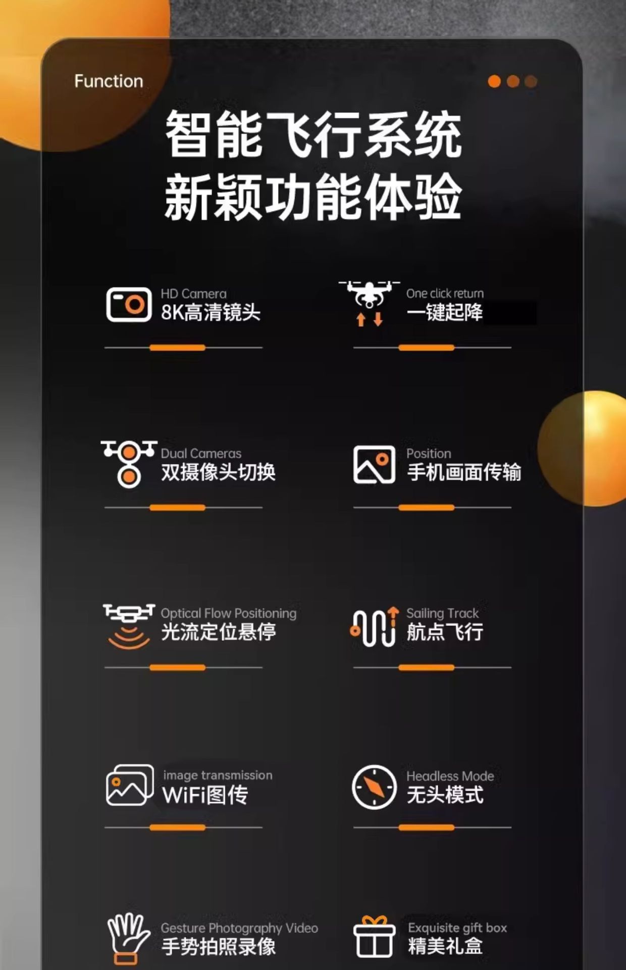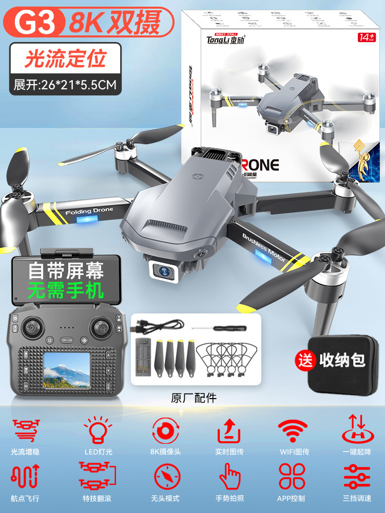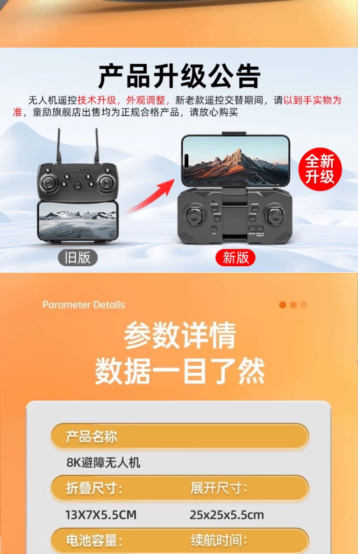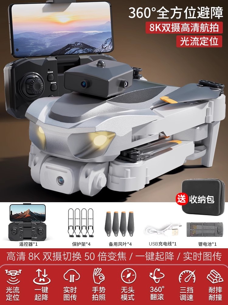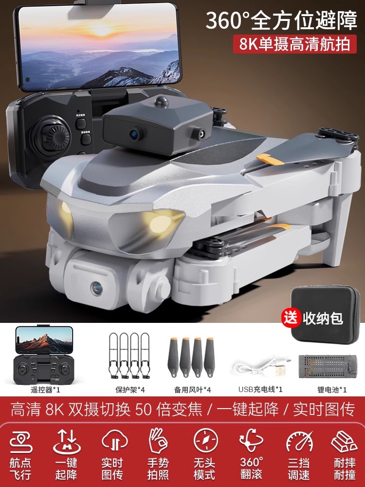 • 화면 제어 대형 화면 리모콘 [손잡이 + 휴대폰] 듀얼 화면 전환 [브러시리스 모터/광학 흐름 안정화/지능형 장애물 회피/고화질 항공 사진/실시간 이미지 전송] 8K 듀얼 카메라