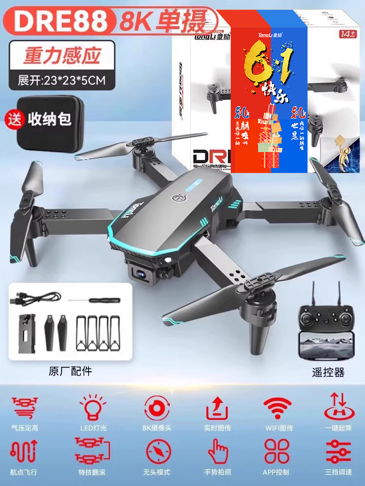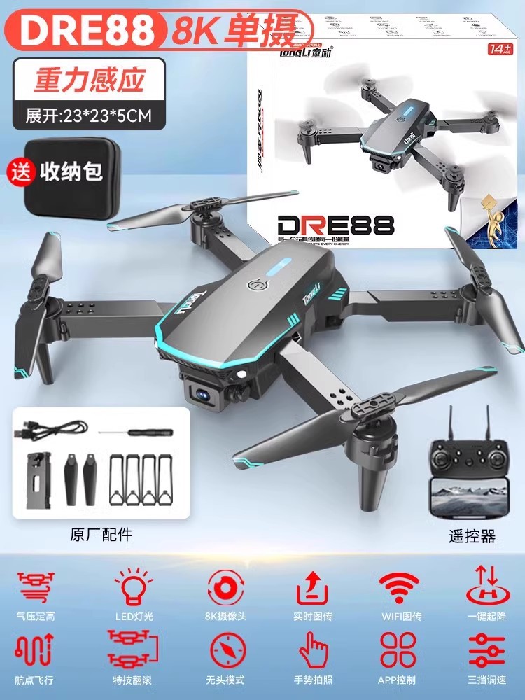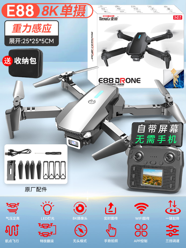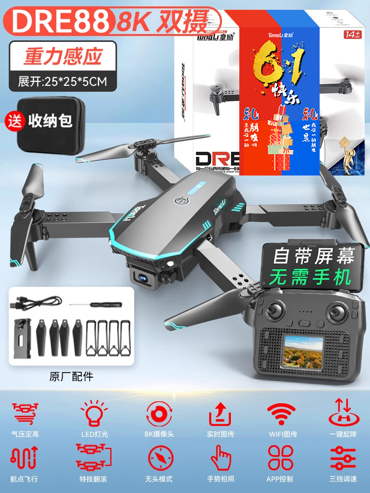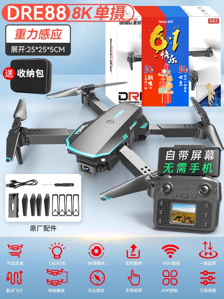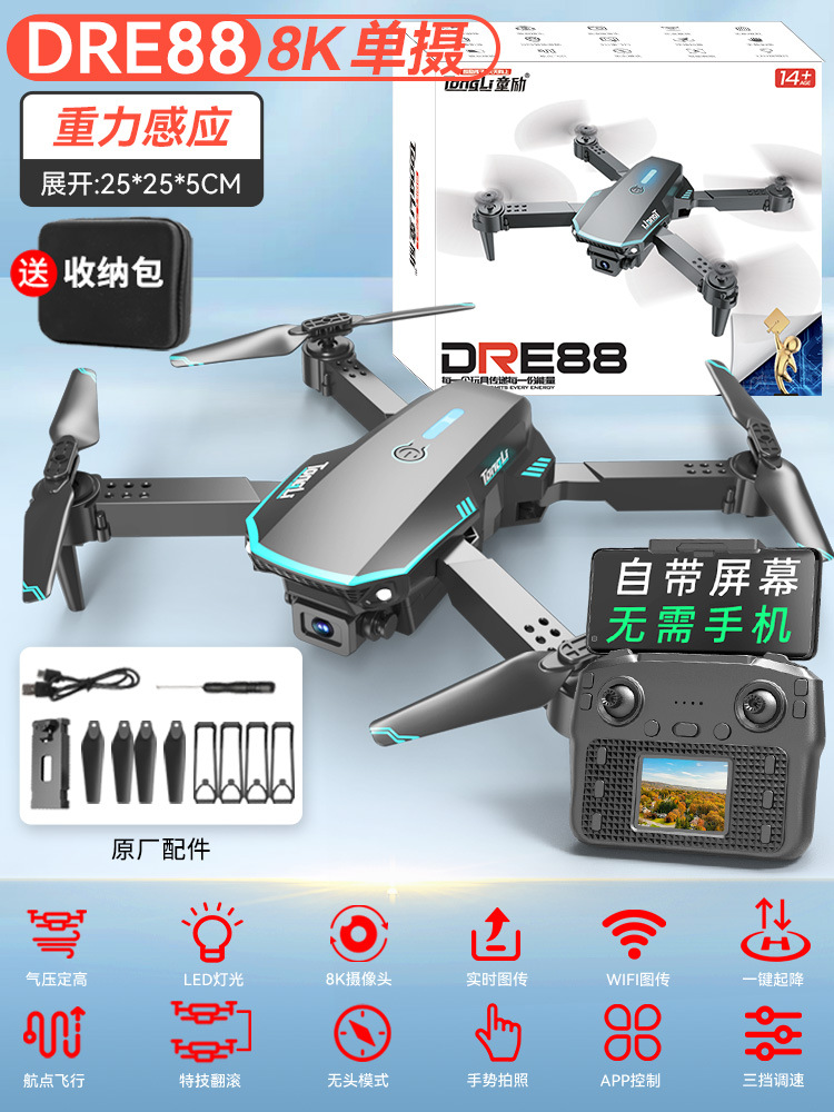 • [선물박스 포장] 화면 제어 대형 화면 리모컨 + WiFi 상호 연결 듀얼 화면 전환 [HD 항공 사진/WiFi 실시간 이미지 전송/고정 높이 호버] 8K 단일 카메라