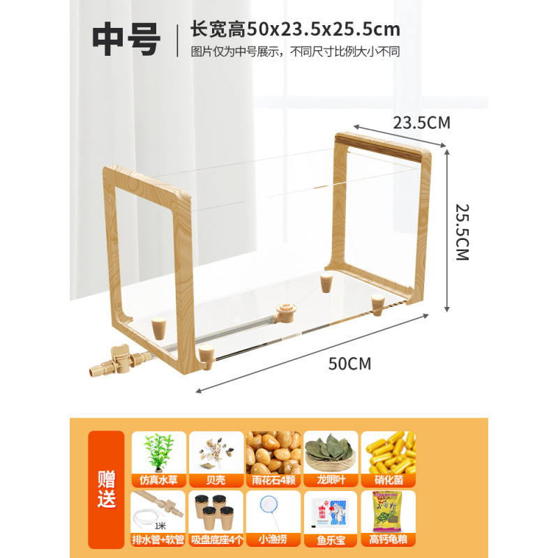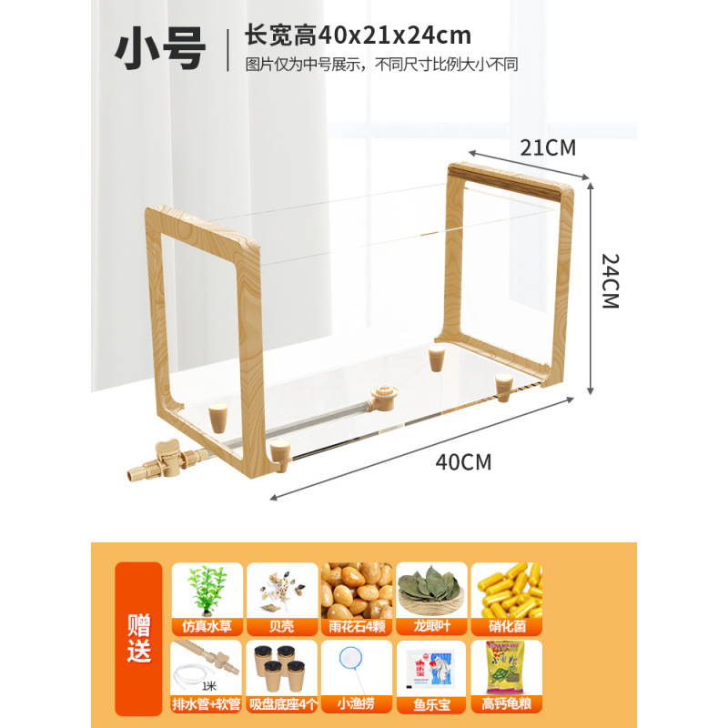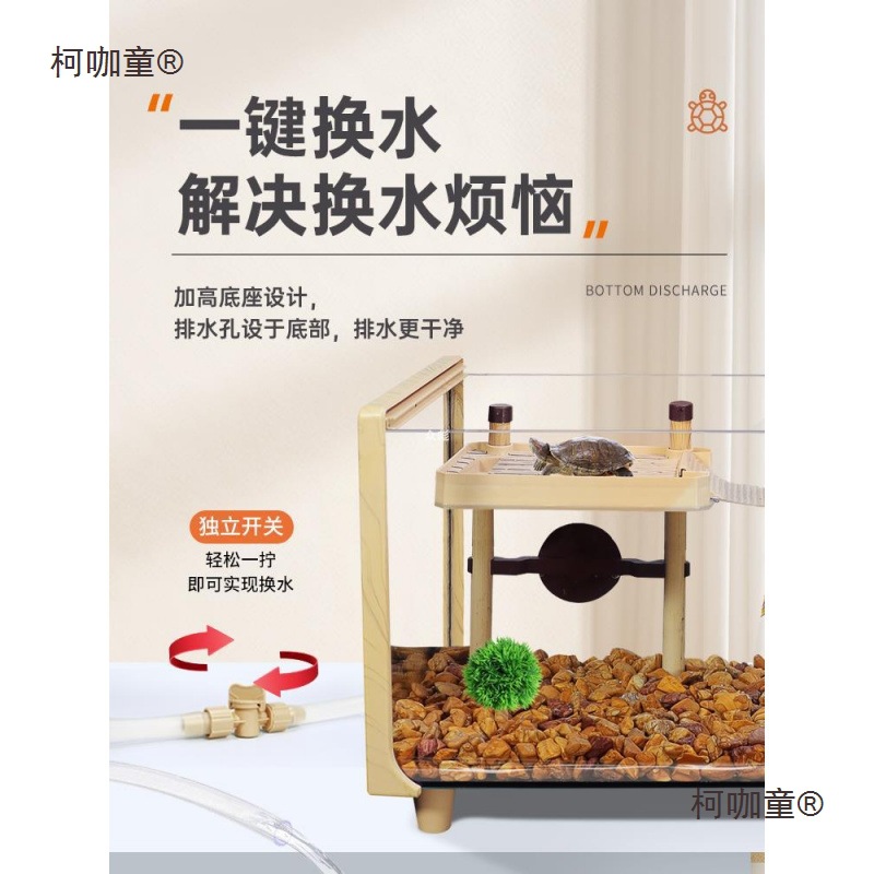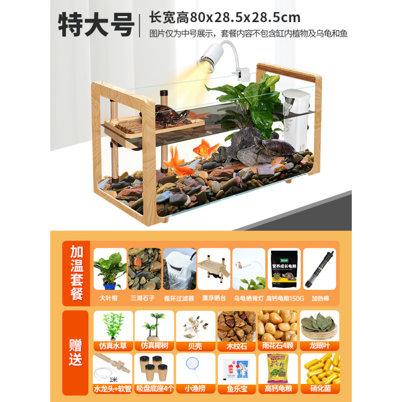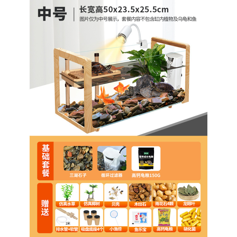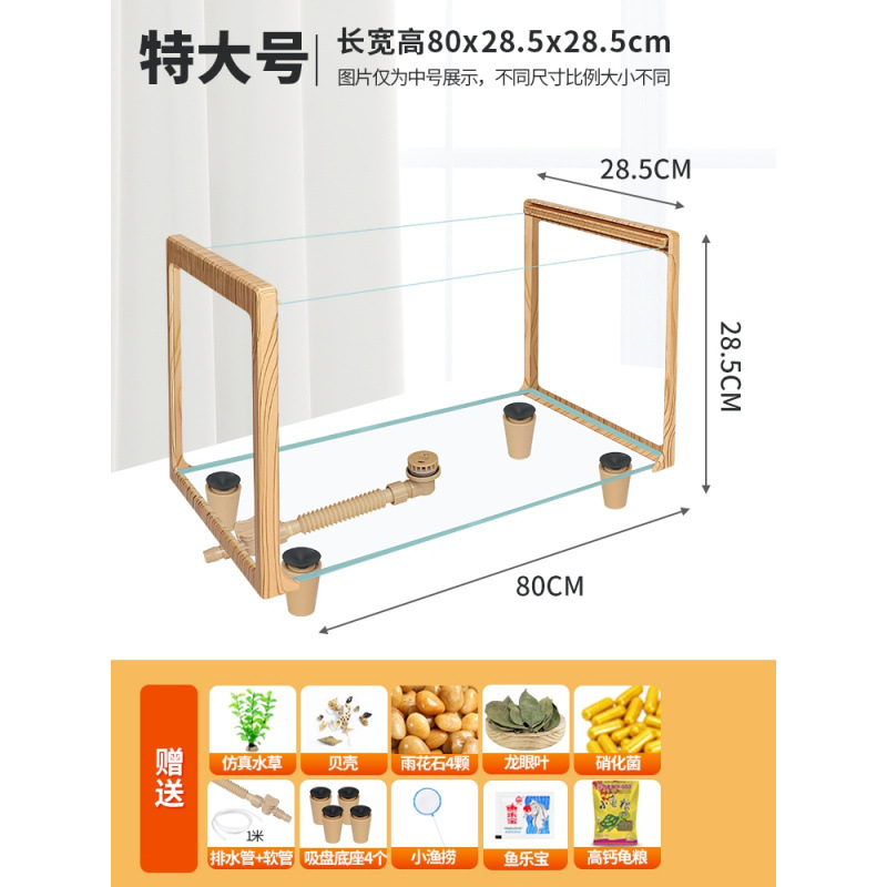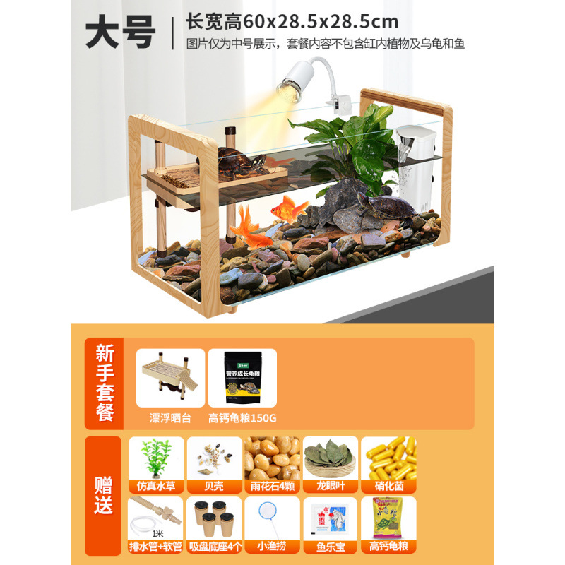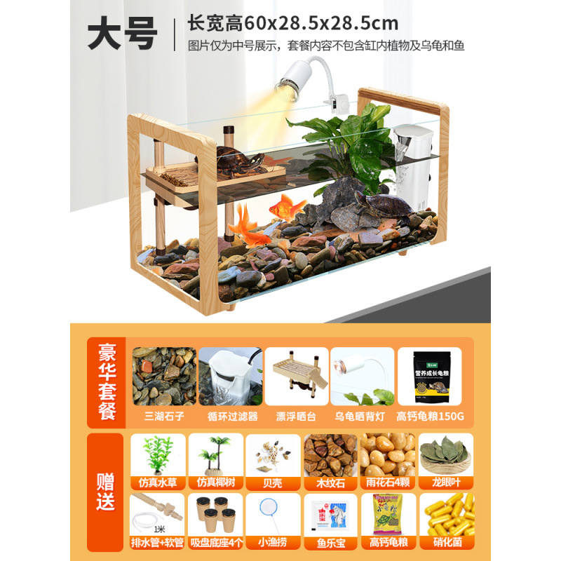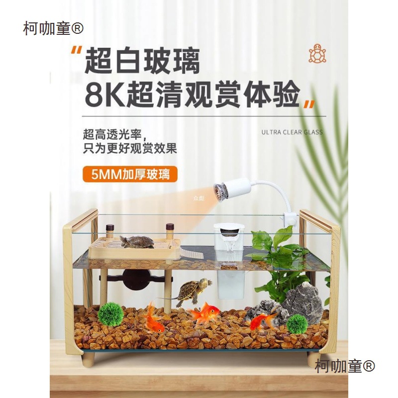 나뭇결 거북이 수조, 초백색 유리 빌라, 생태 일체형 사육통, 대형 및 소형 조경 물고기 및 거북이 혼합 사육통, Metabo