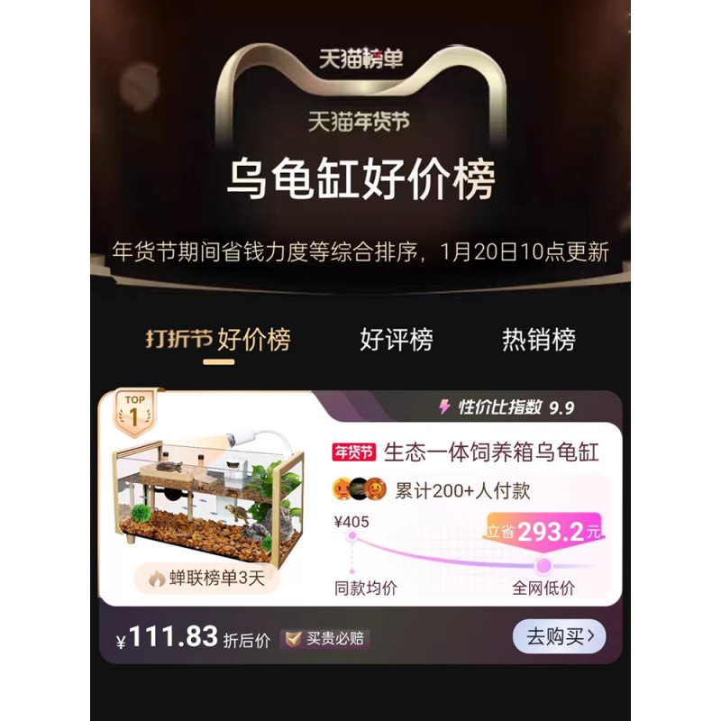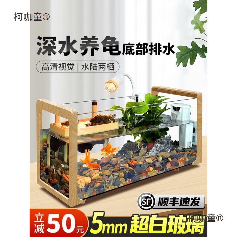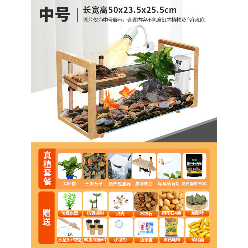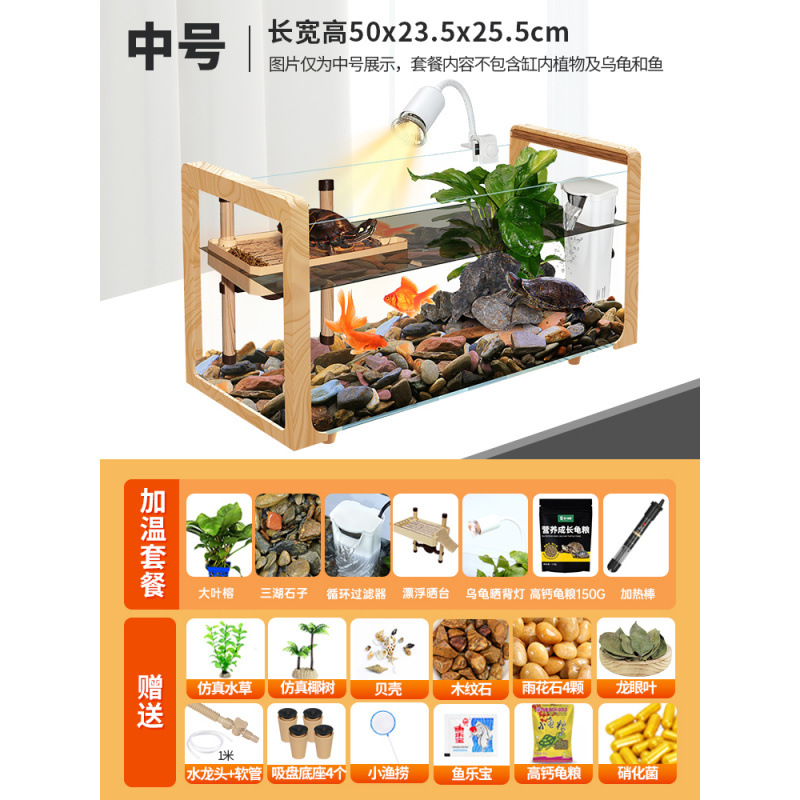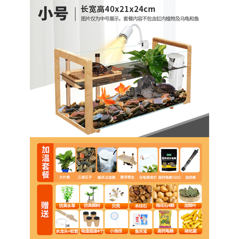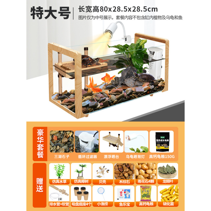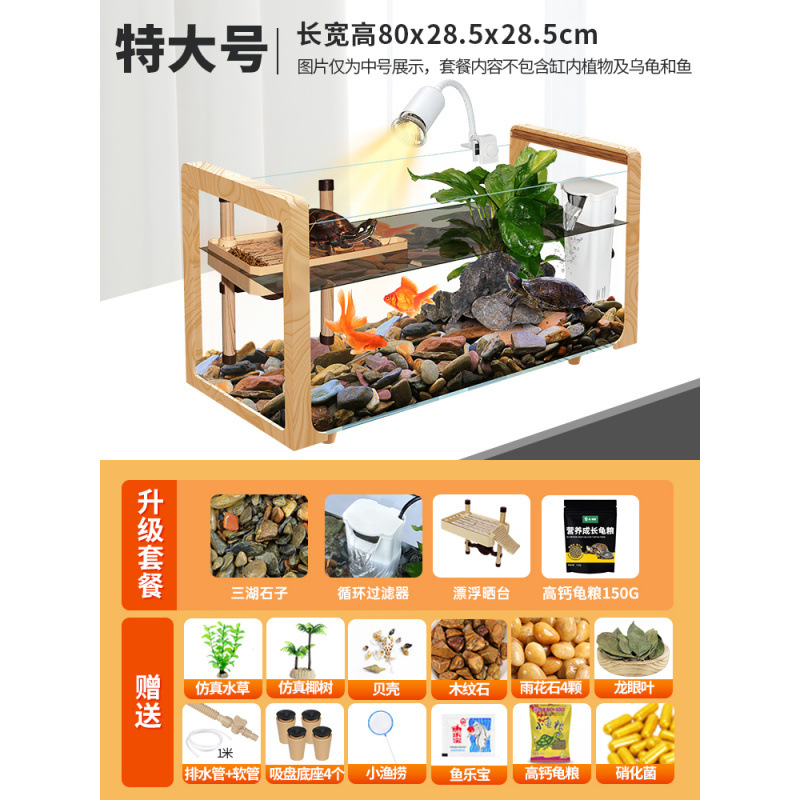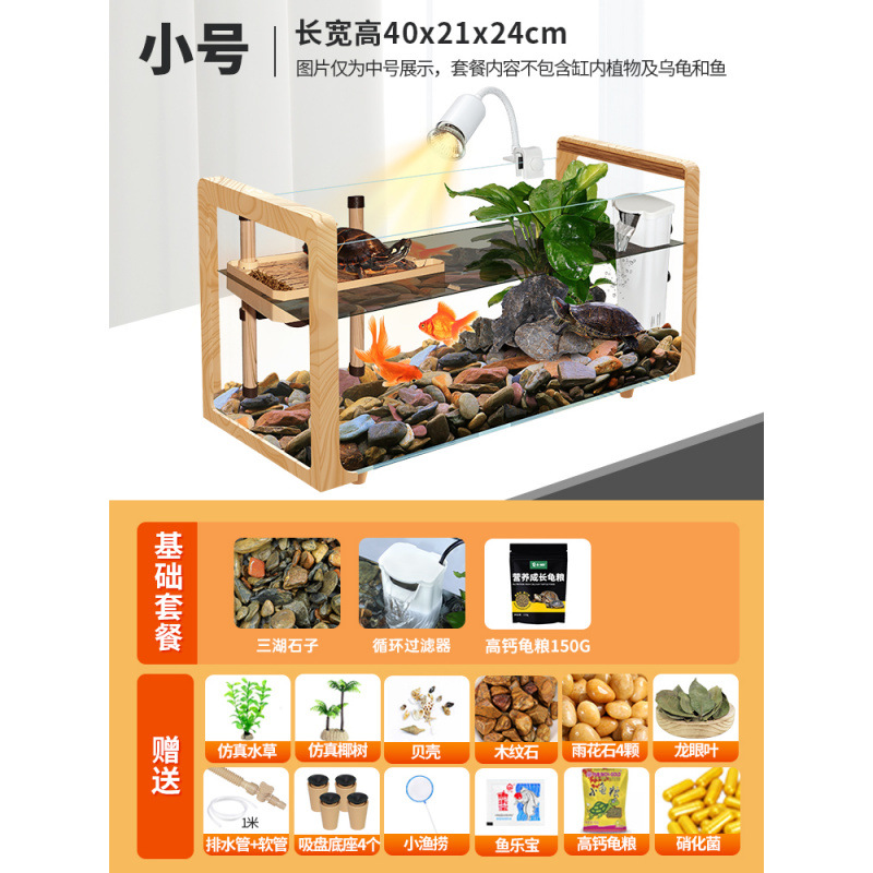 나뭇결 거북이 수조, 초백색 유리 빌라, 생태 일체형 사육통, 대형 및 소형 조경 물고기 및 거북이 혼합 사육통, Metabo스토어 가기