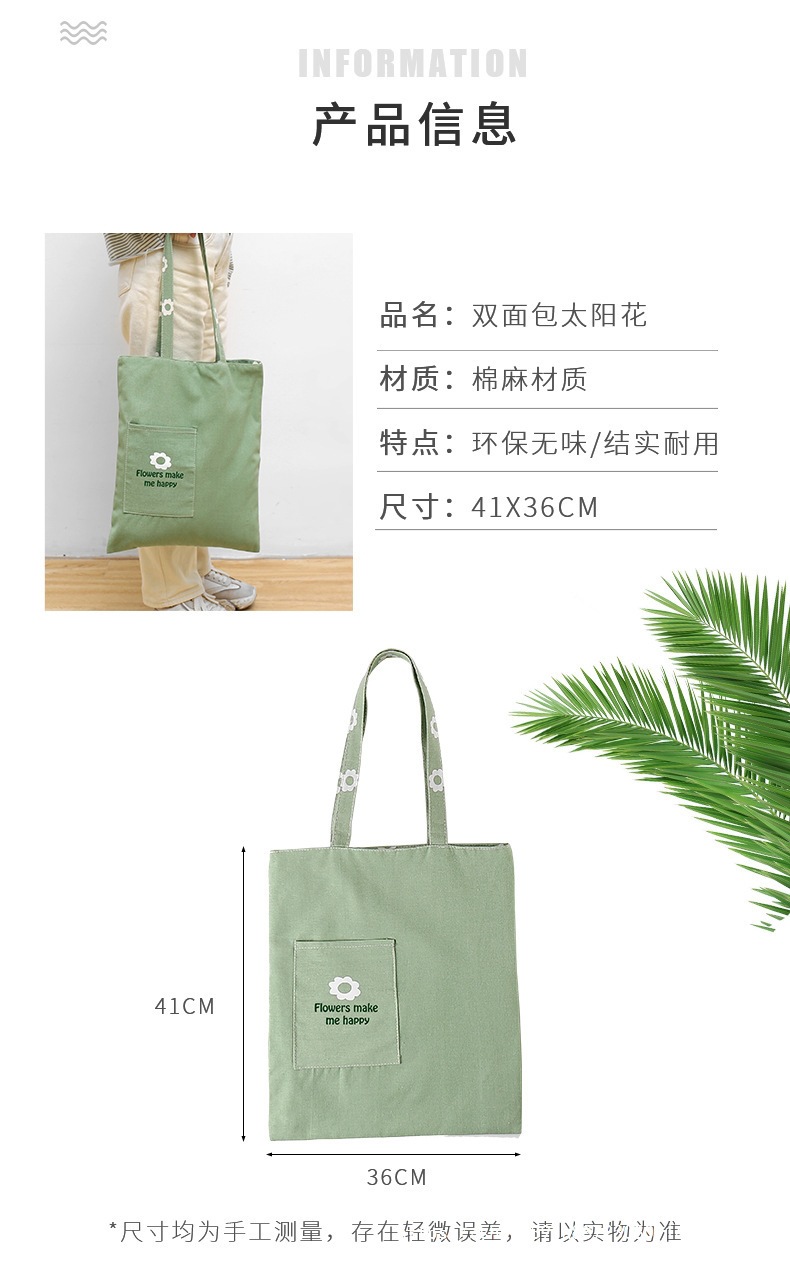 Youmei 패브릭 양면 캔버스 핸드백 캔버스 가방 핸드백 쇼핑백 보관 가방 잡다한 가방