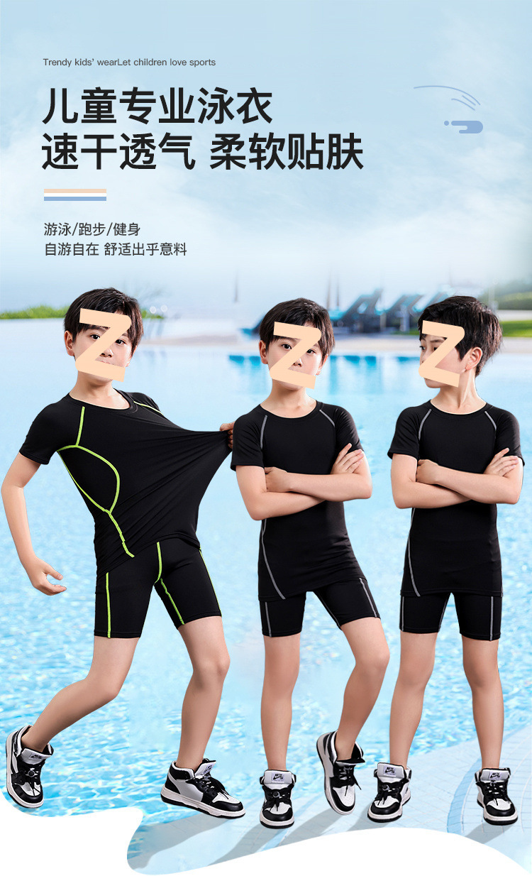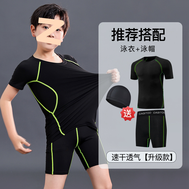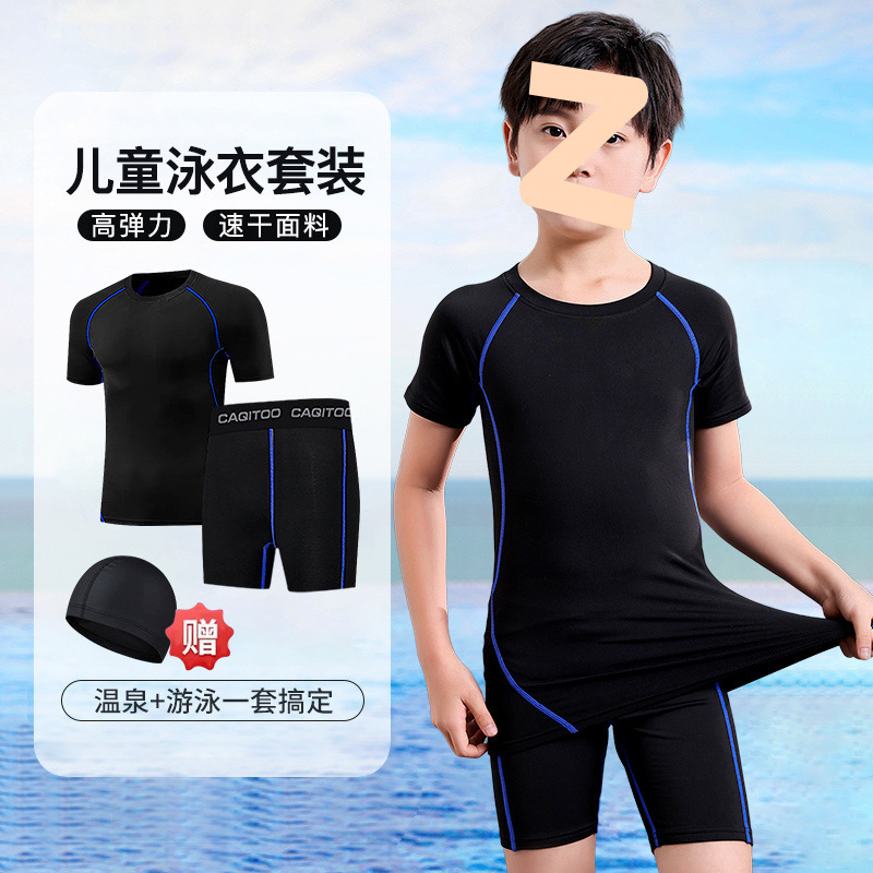 어린이 수영복 남성용 소형, 중형 및 대형 어린이 청소년 스플릿 소년 수영복 여름 2025 새로운 자외선 차단 수영 트렁크 세트스토어 가기
