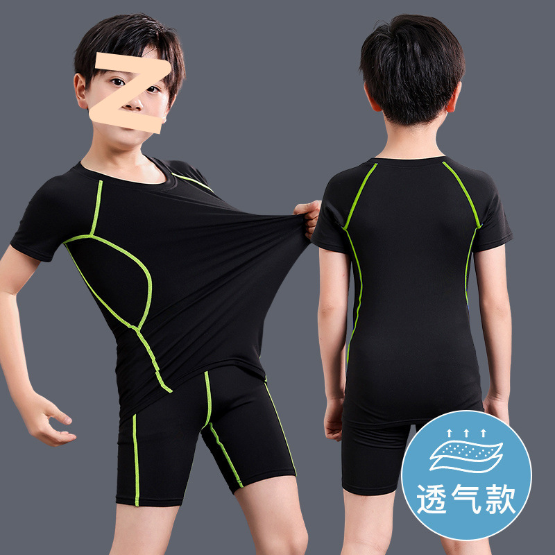 어린이 수영복 남성용 소형, 중형 및 대형 어린이 청소년 스플릿 소년 수영복 여름 2025 새로운 자외선 차단 수영 트렁크 세트