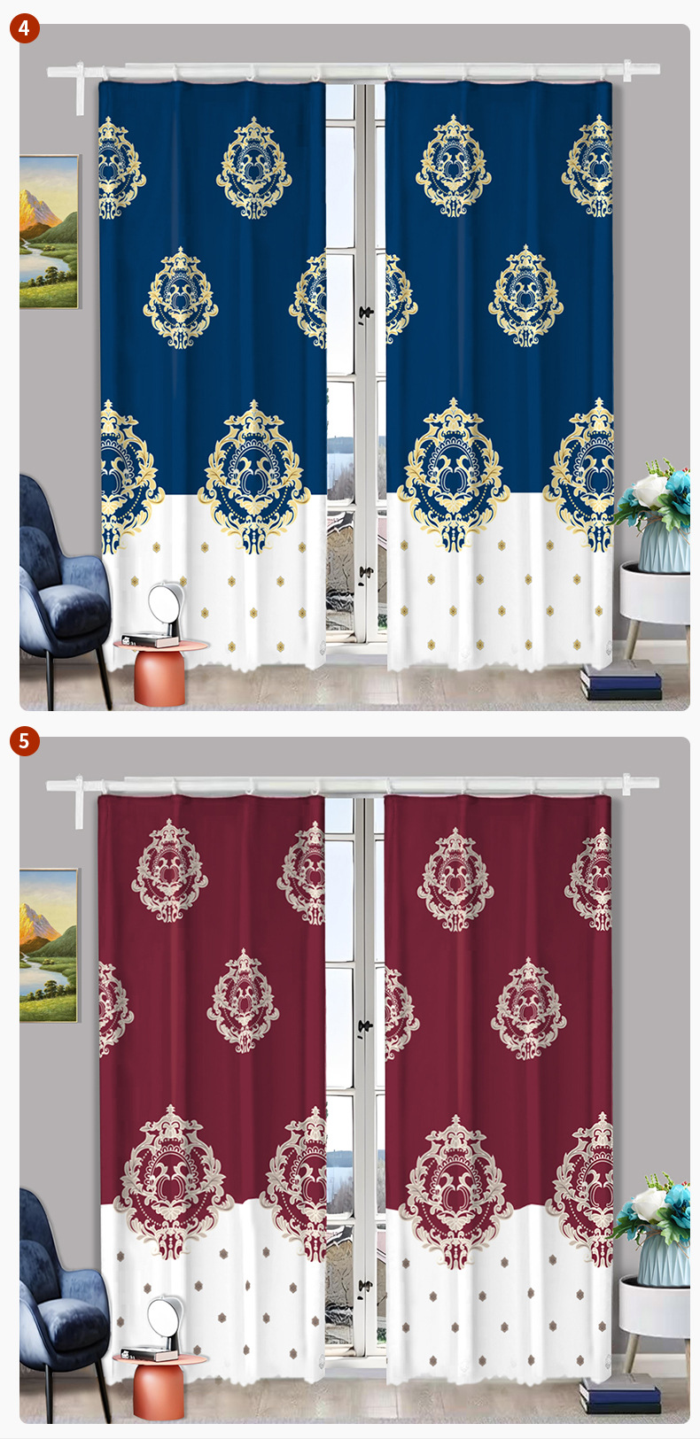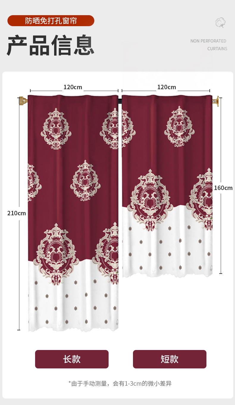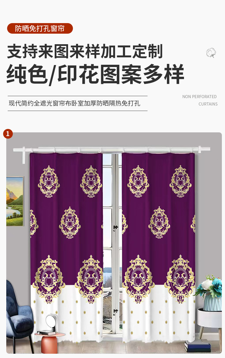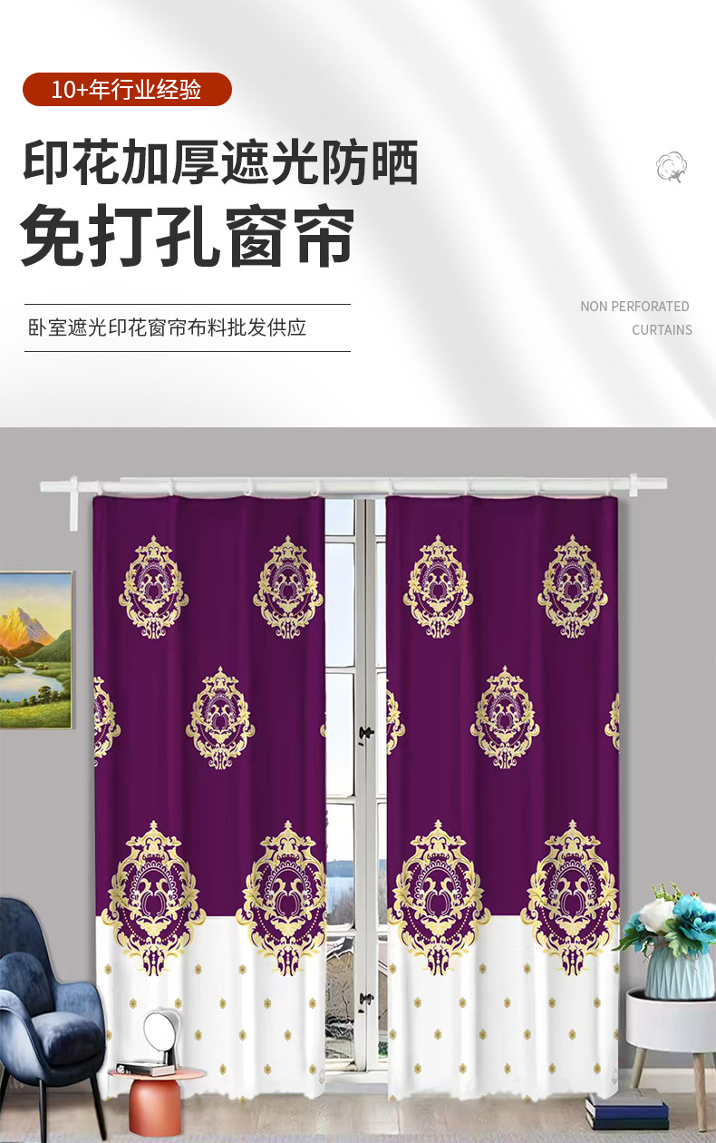 고정밀 질감의 차광 커튼 원단, 프린트 처리된 두꺼운 차광 및 자외선 차단, 무타공 커튼, 가정용 차양스토어 가기