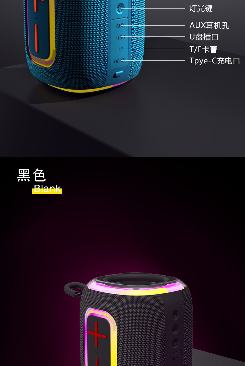 새로운 무선 RGB 다채로운 스피커 데스크탑 휴대용 고품질 소형 스피커 슈퍼 서브 우퍼 블루투스 스피커