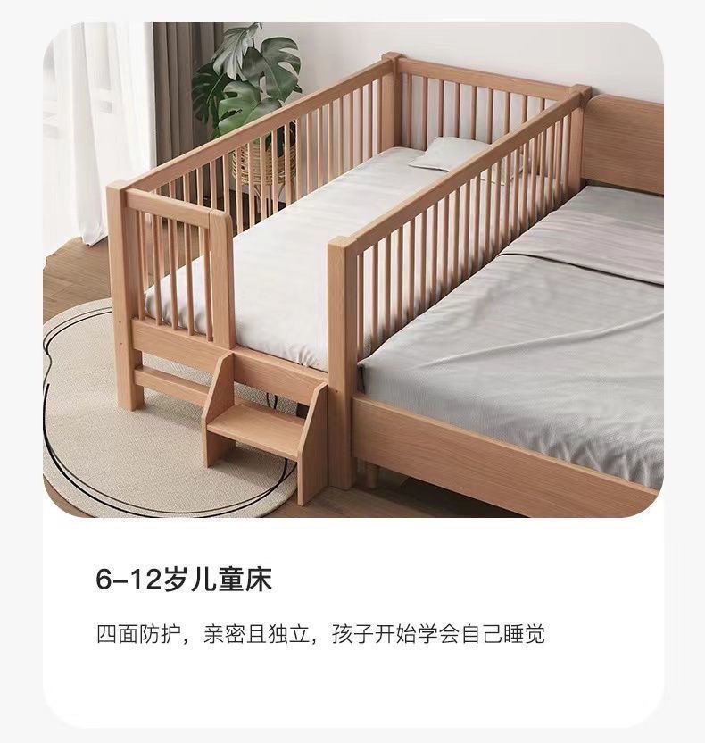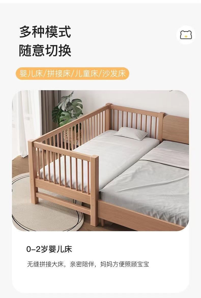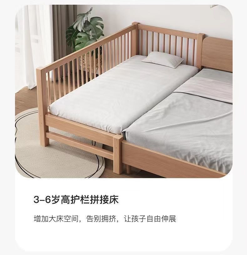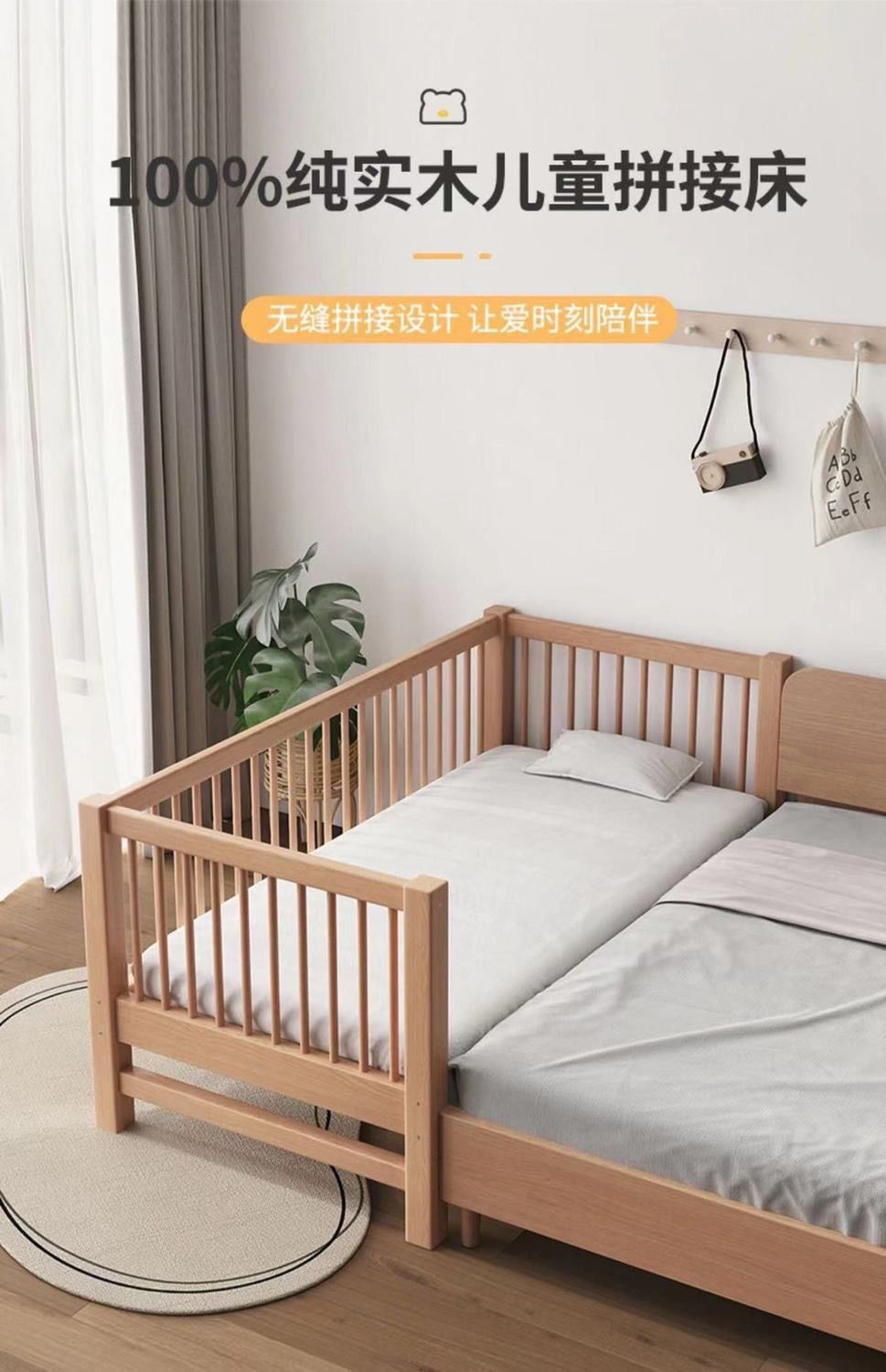 호두 어린이 침대 유아용 침대 순수 단단한 나무 유아용 침대 소년 소녀 공주 침대 싱글 침대 어린이 접합 침대스토어 가기