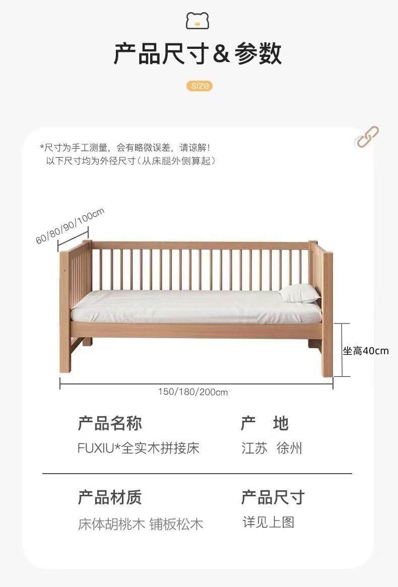 호두 어린이 침대 유아용 침대 순수 단단한 나무 유아용 침대 소년 소녀 공주 침대 싱글 침대 어린이 접합 침대