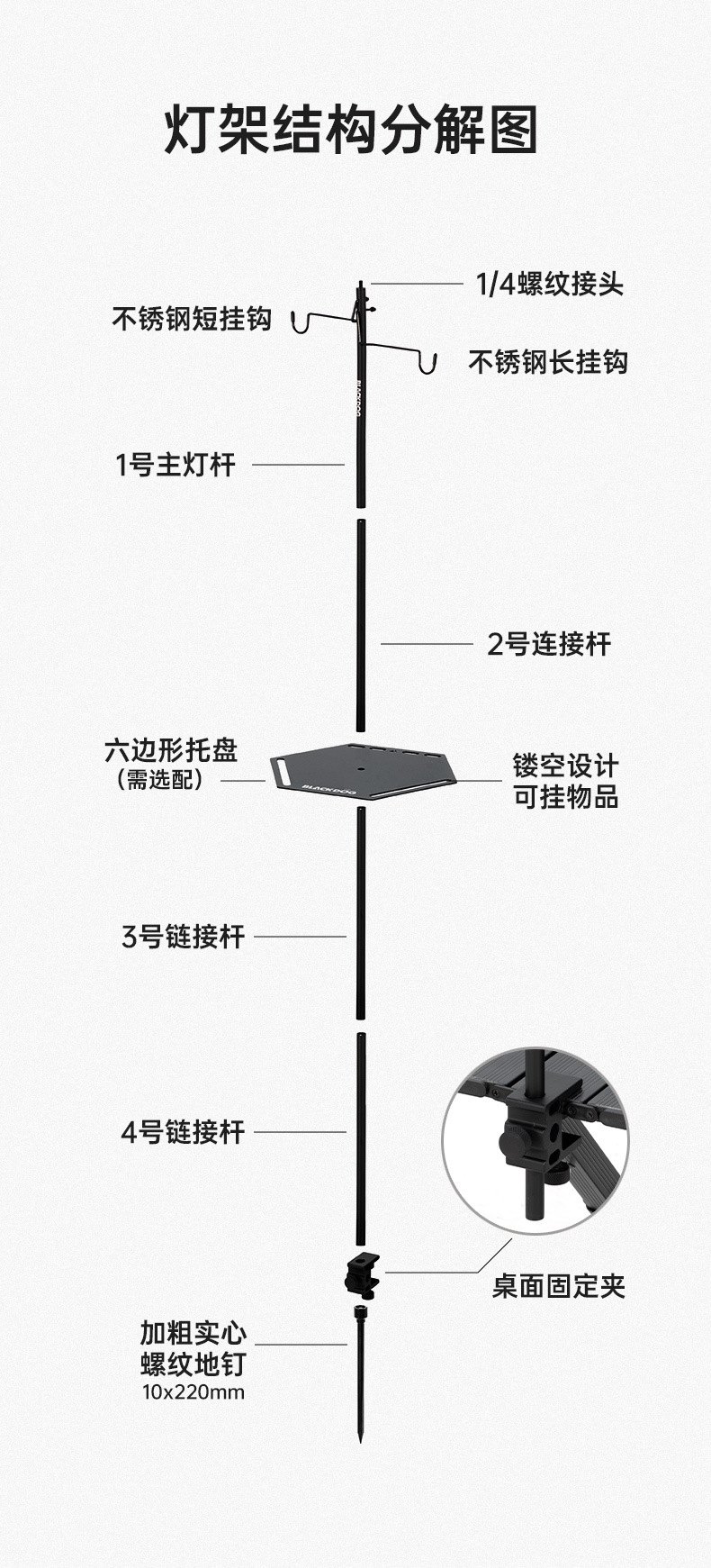 Blackdog 야외 램프 스탠드 분리형 알루미늄 합금 휴대용 캠핑 램프 폴 조명 램프 브래킷 캠핑