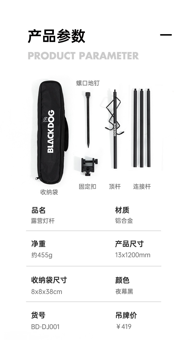 Blackdog 야외 램프 스탠드 분리형 알루미늄 합금 휴대용 캠핑 램프 폴 조명 램프 브래킷 캠핑스토어 가기