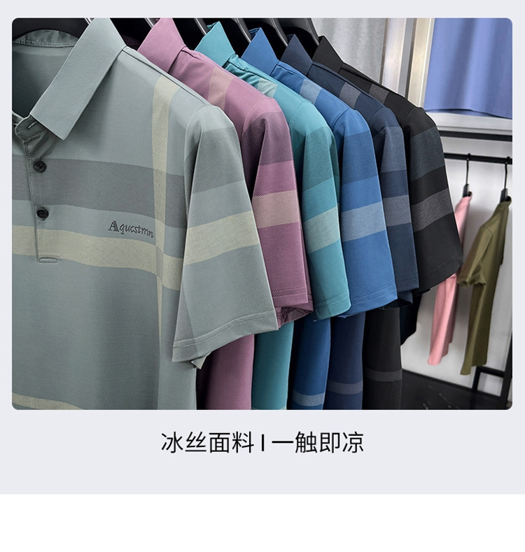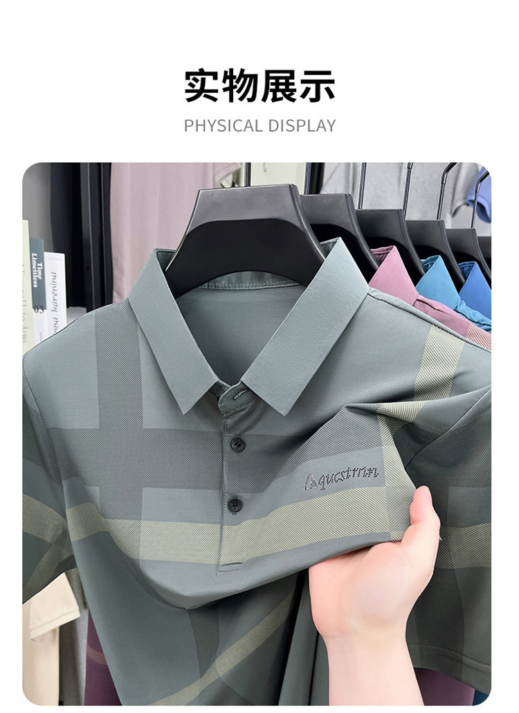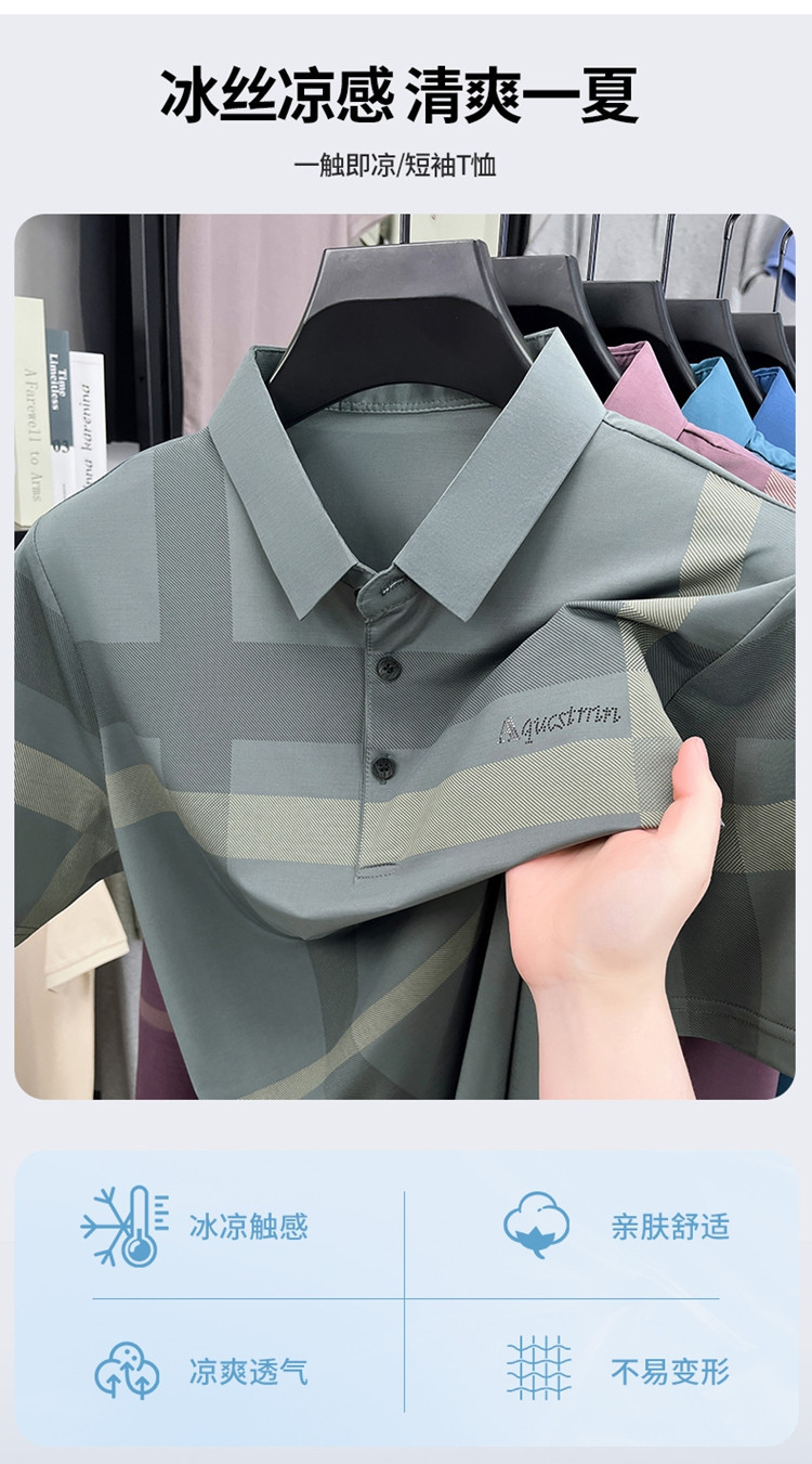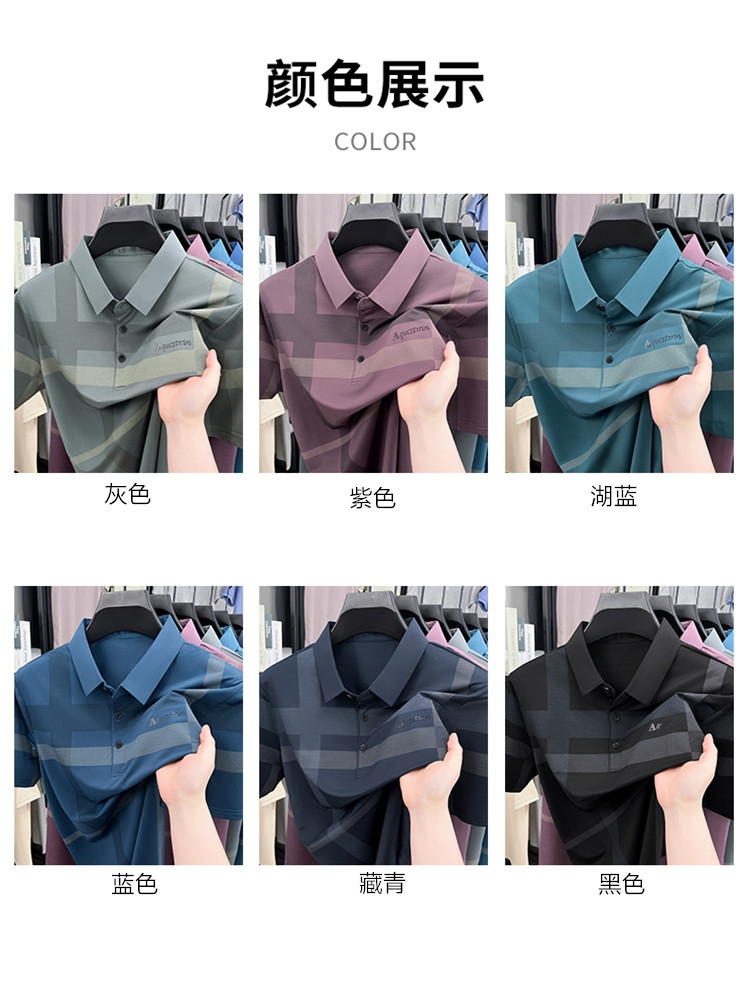 젊은 및 중년 아빠를위한 여름 반팔 얼음 실크 통기성 남성 티셔츠 새로운 옷깃 비즈니스 캐주얼 폴로 셔츠스토어 가기