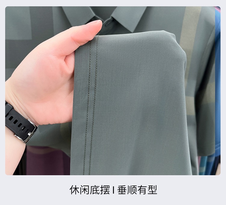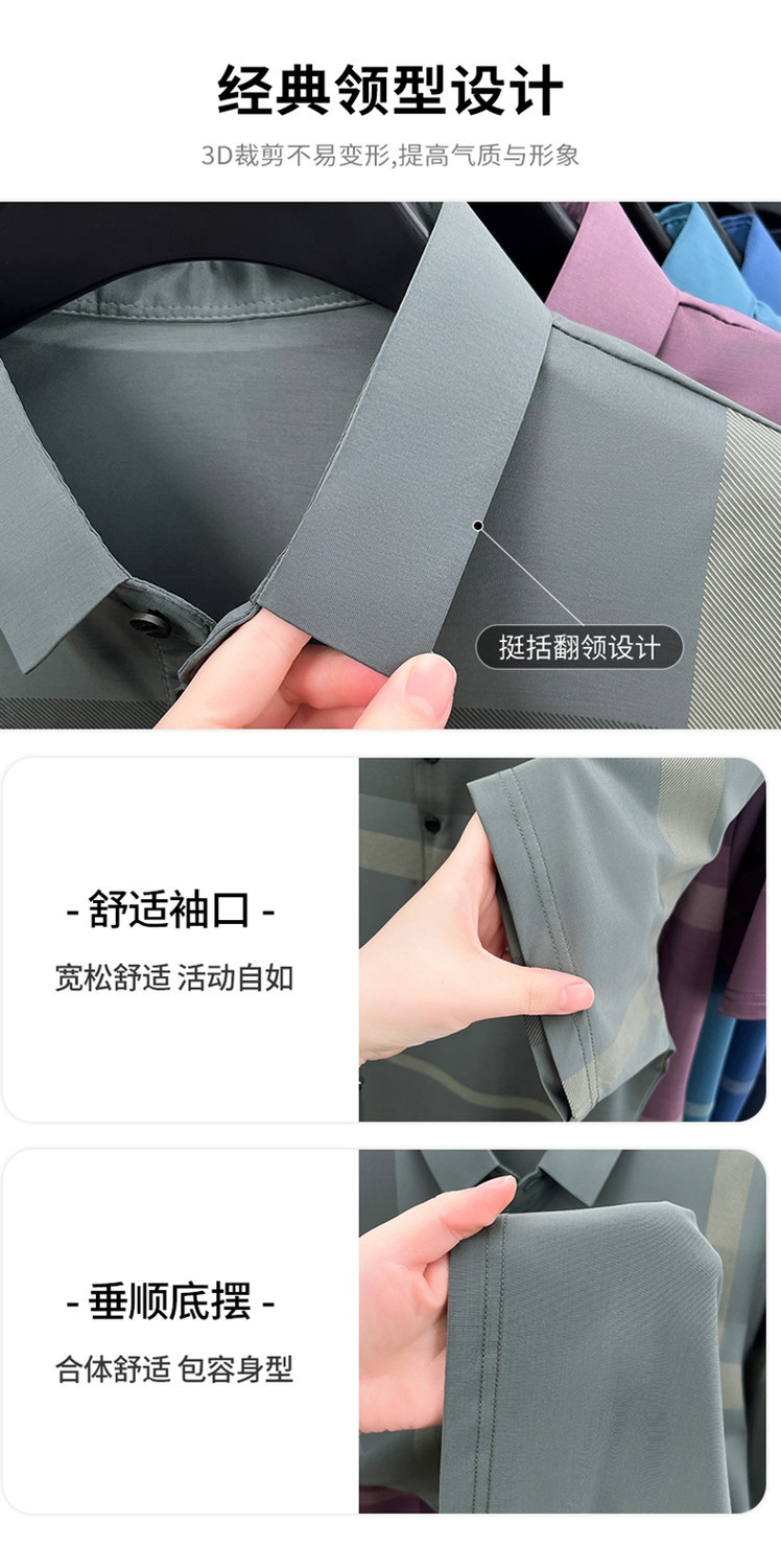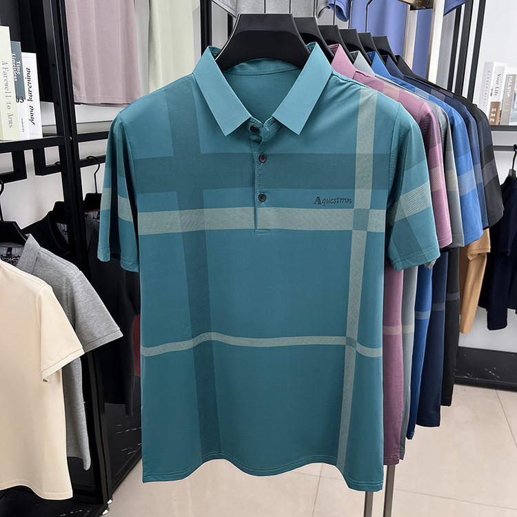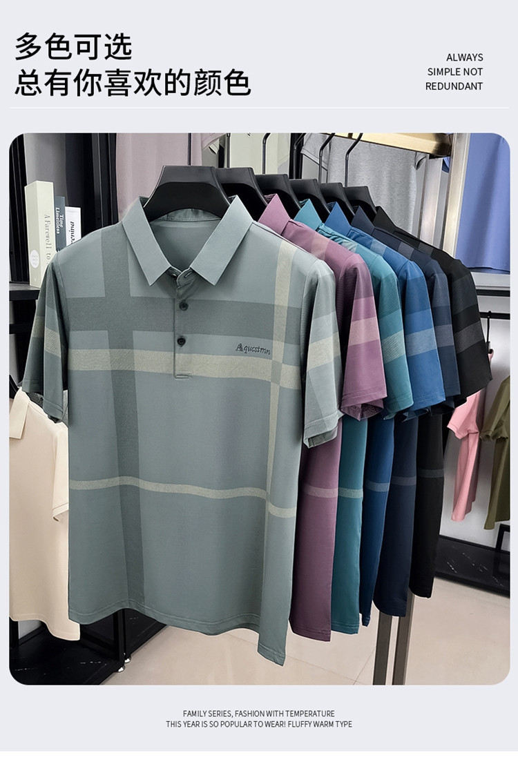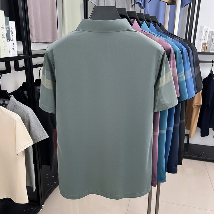 젊은 및 중년 아빠를위한 여름 반팔 얼음 실크 통기성 남성 티셔츠 새로운 옷깃 비즈니스 캐주얼 폴로 셔츠스토어 가기