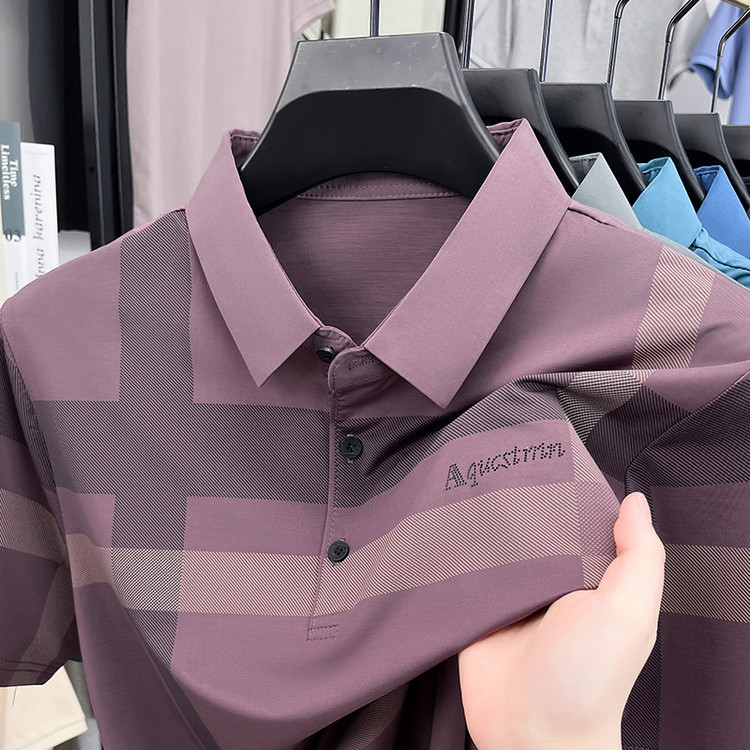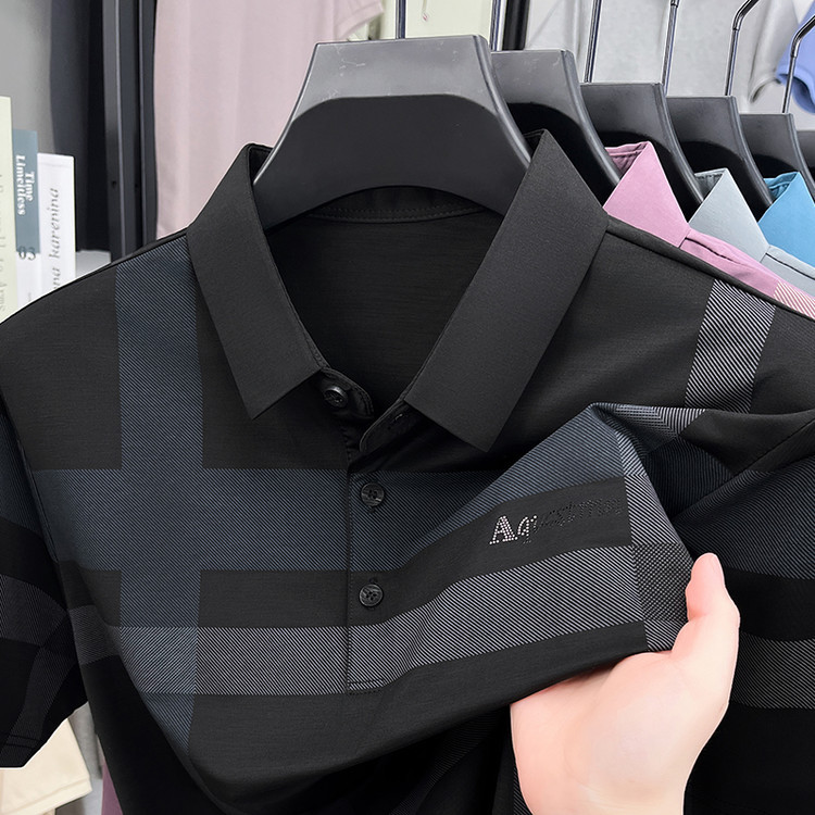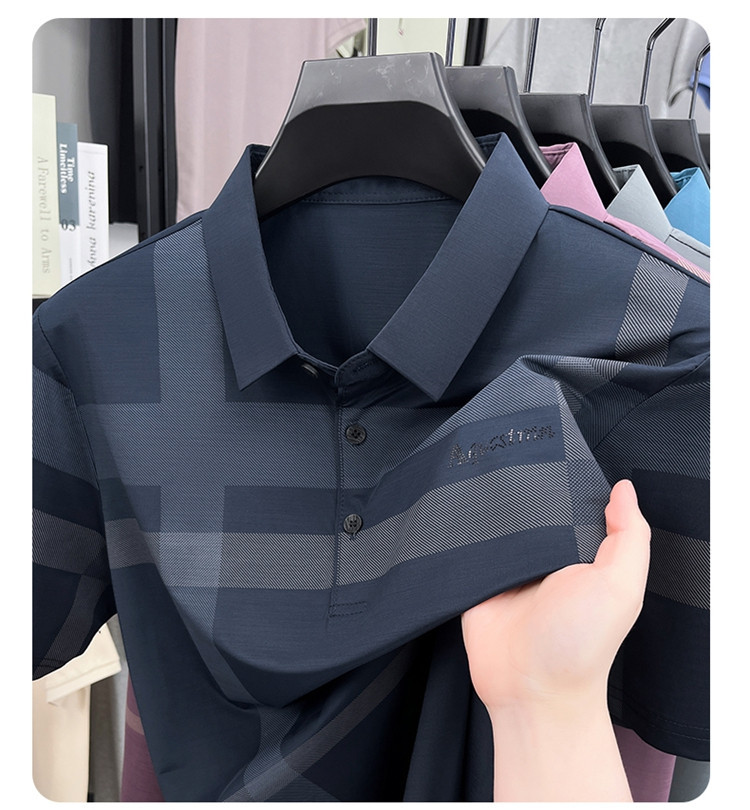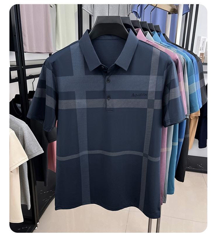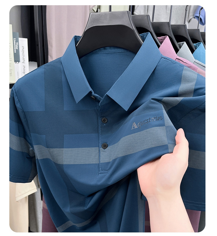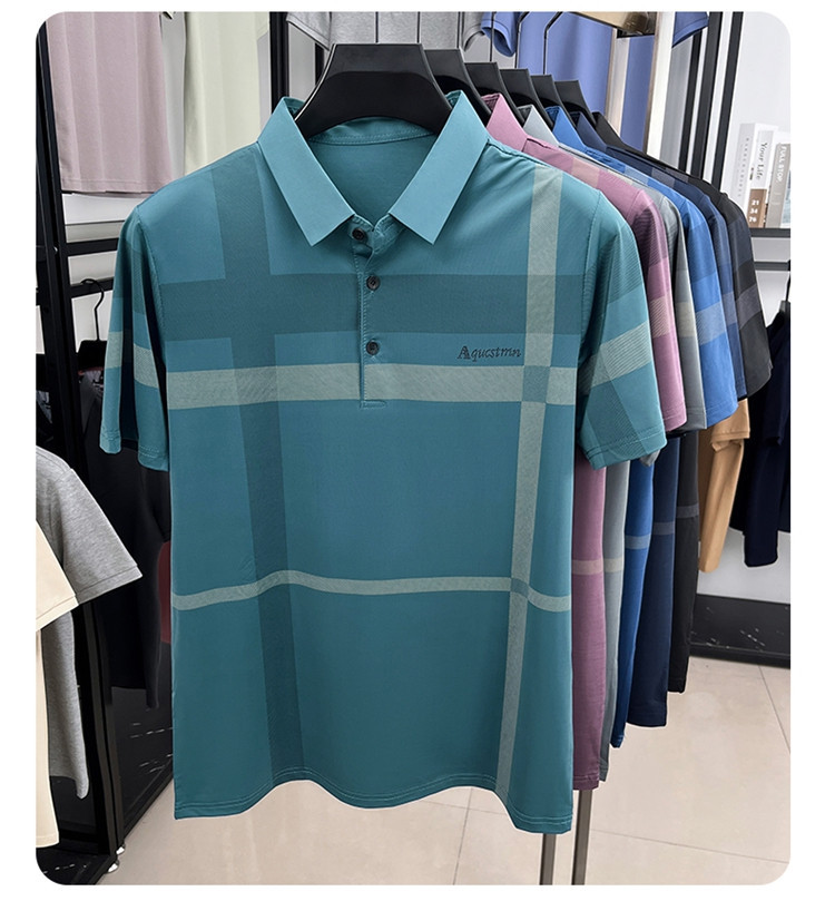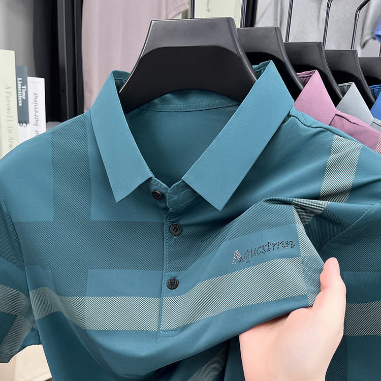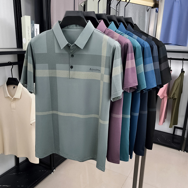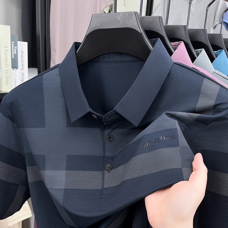 젊은 및 중년 아빠를위한 여름 반팔 얼음 실크 통기성 남성 티셔츠 새로운 옷깃 비즈니스 캐주얼 폴로 셔츠