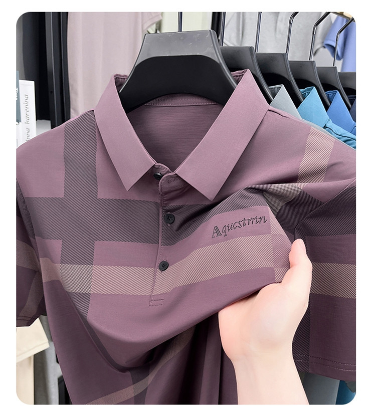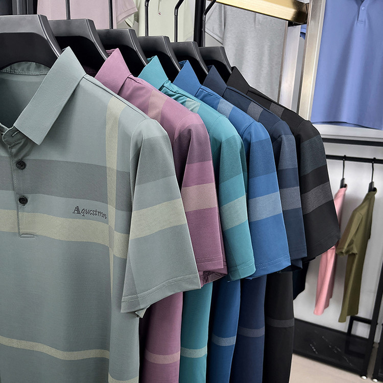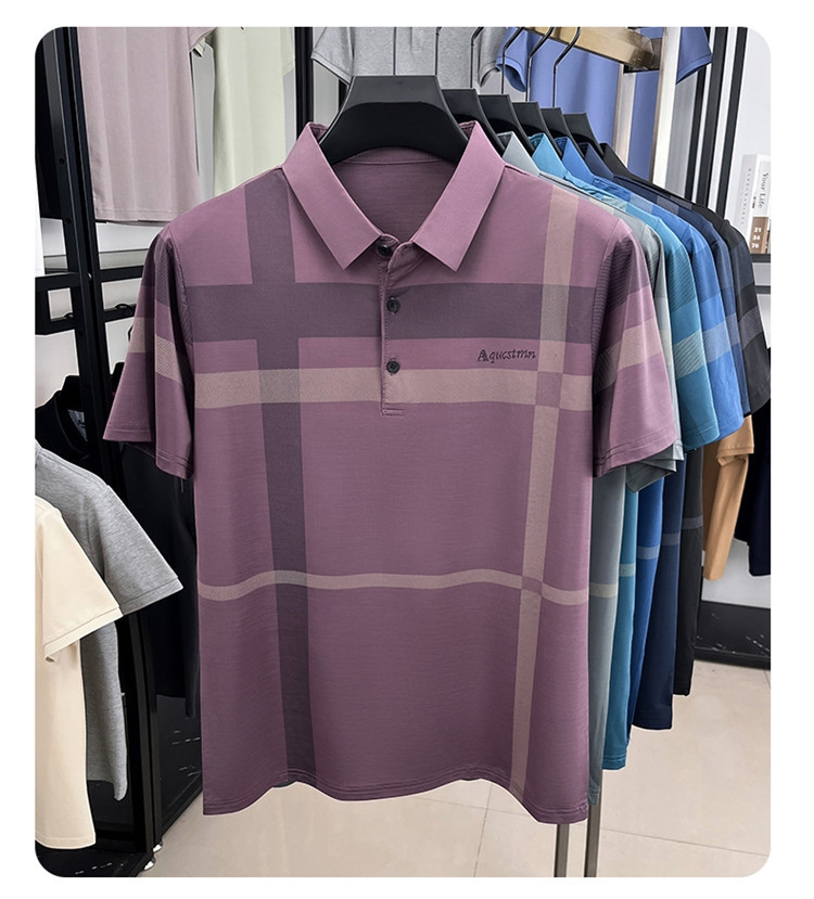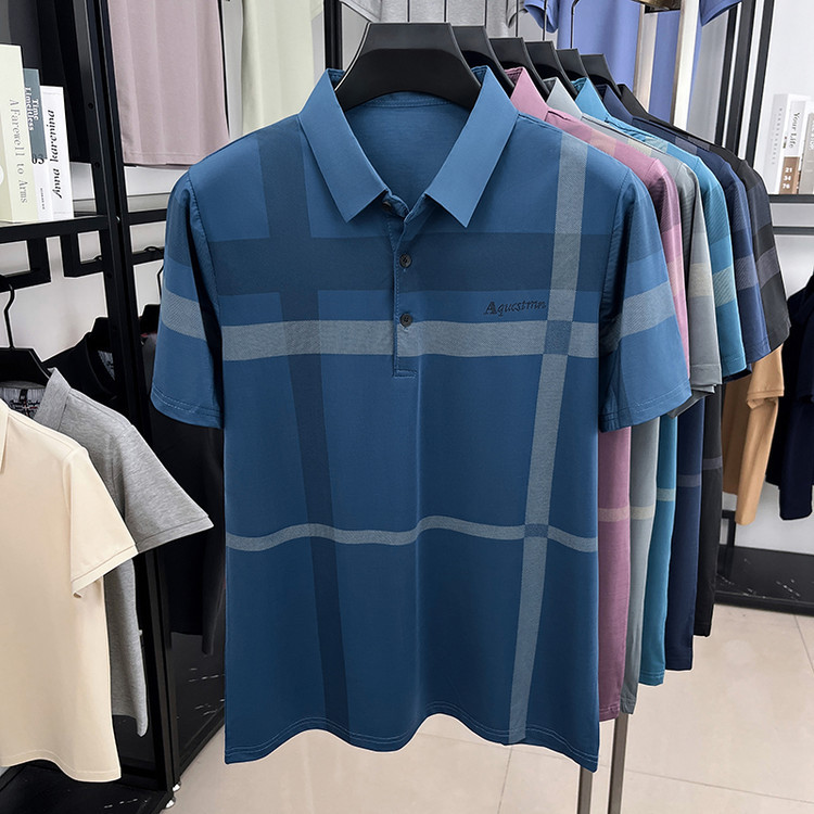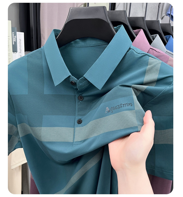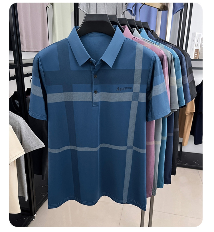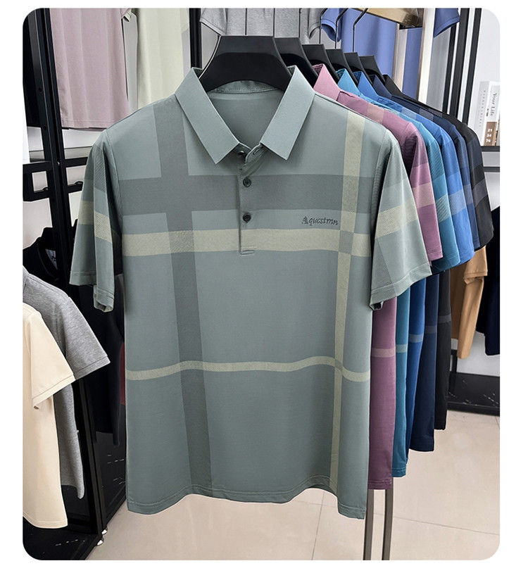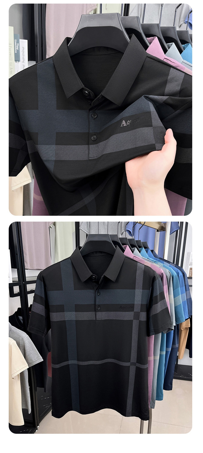 젊은 및 중년 아빠를위한 여름 반팔 얼음 실크 통기성 남성 티셔츠 새로운 옷깃 비즈니스 캐주얼 폴로 셔츠