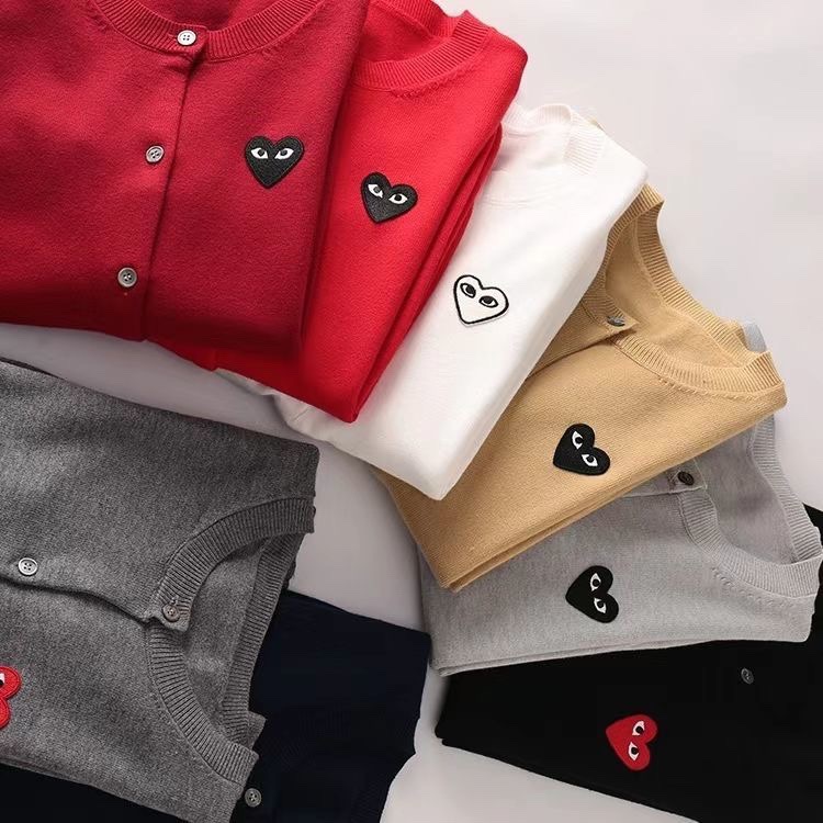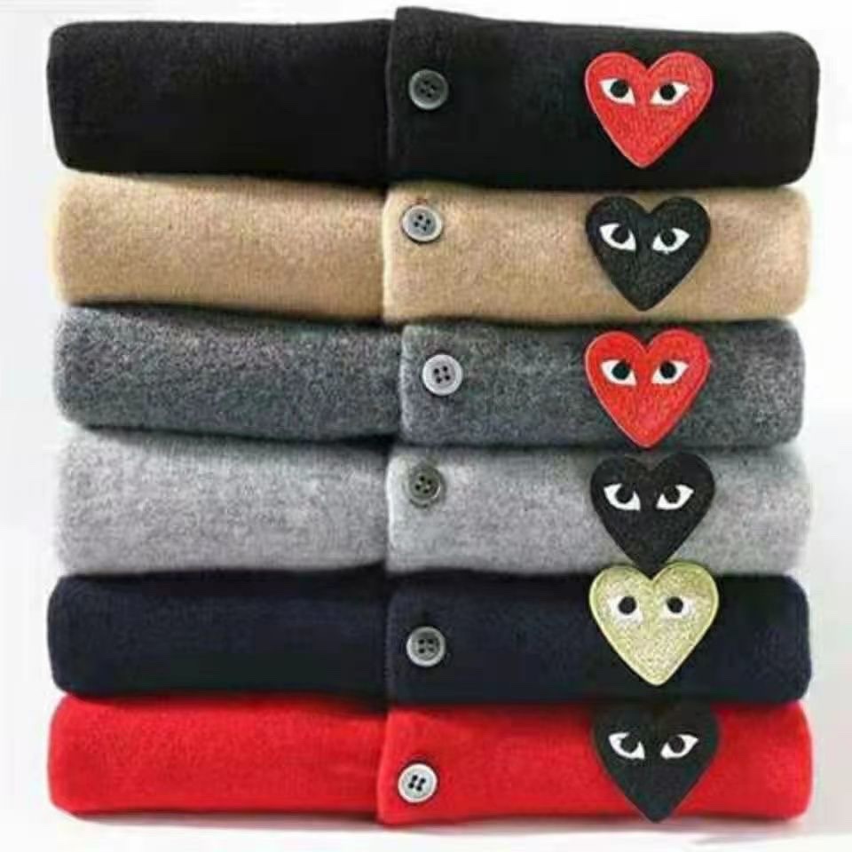 일본 PLAY 캐시미어 니트 카디건 여성 탑 러브 쿠로보리 스웨터 재킷 남성과 여성 커플 하트