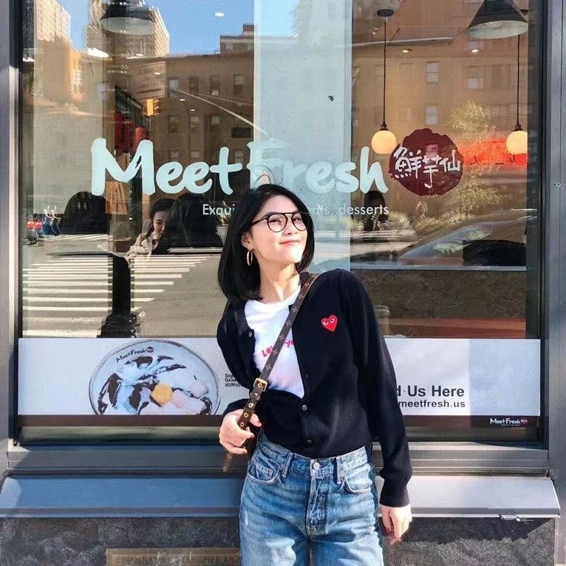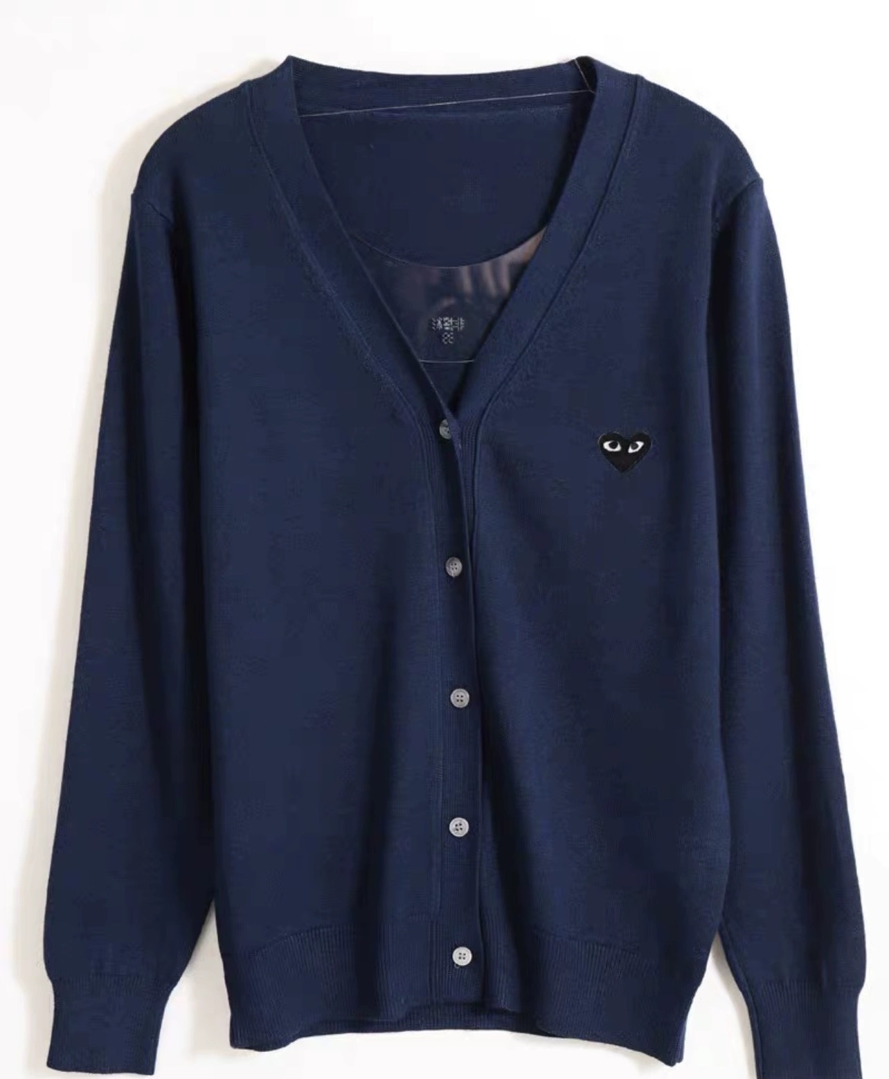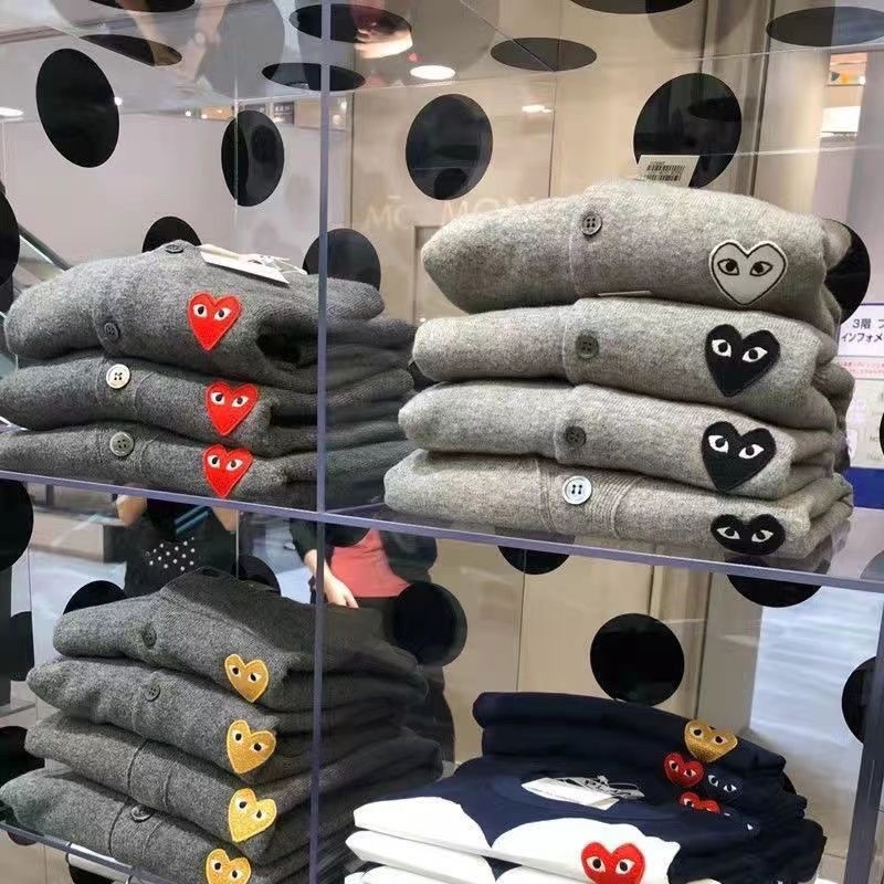일본 PLAY 캐시미어 니트 카디건 여성 탑 러브 쿠로보리 스웨터 재킷 남성과 여성 커플 하트스토어 가기