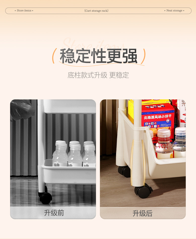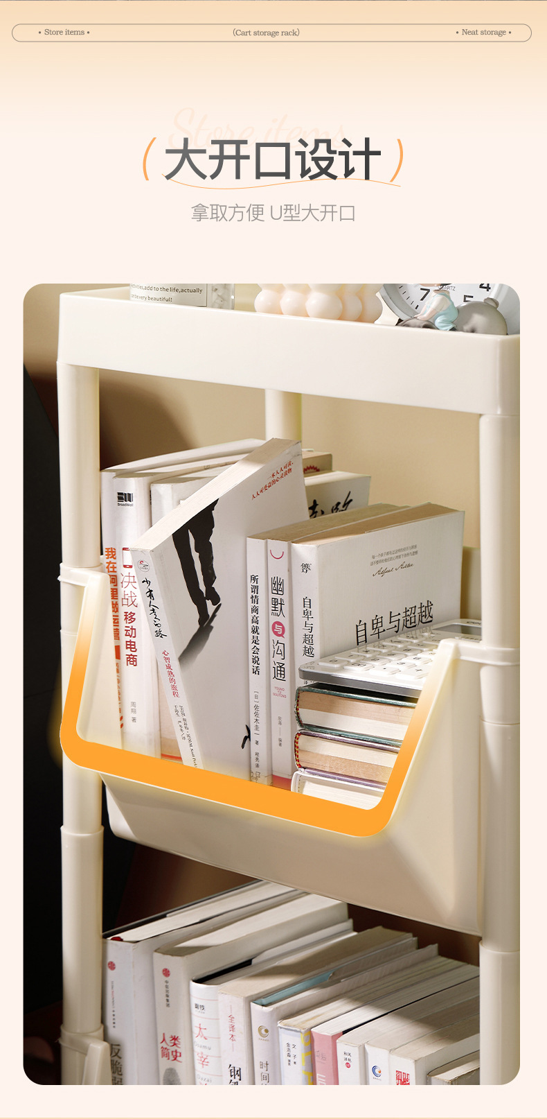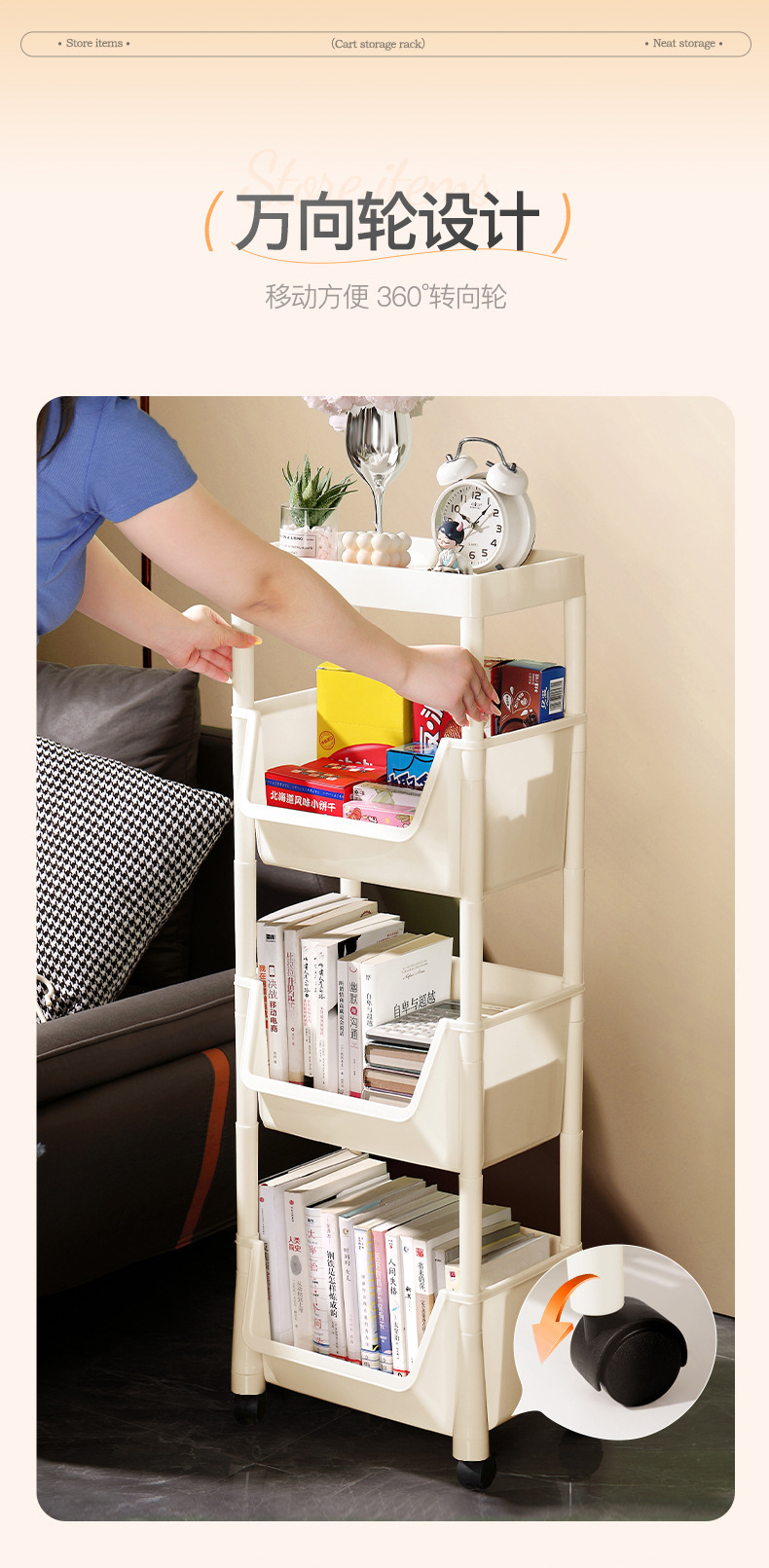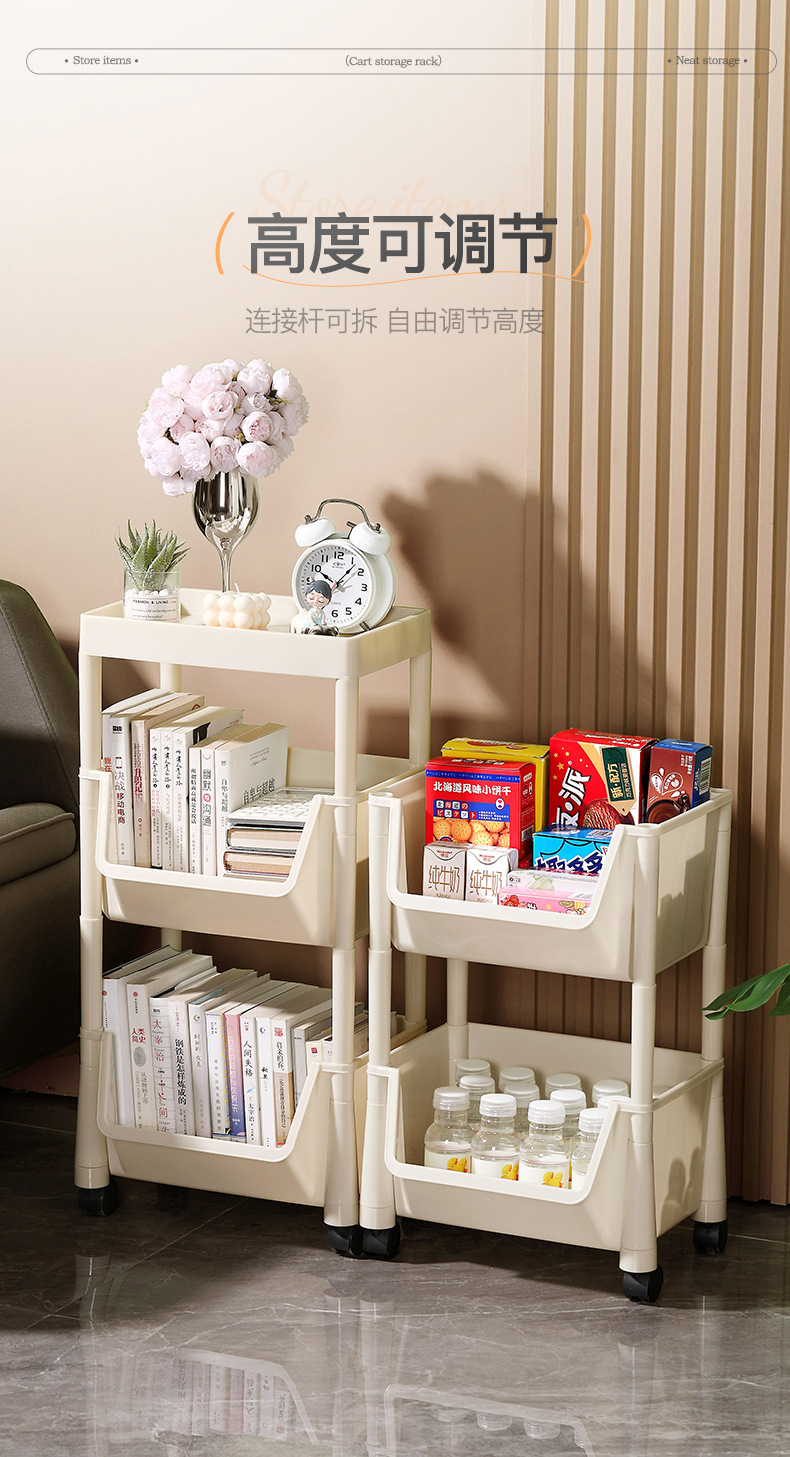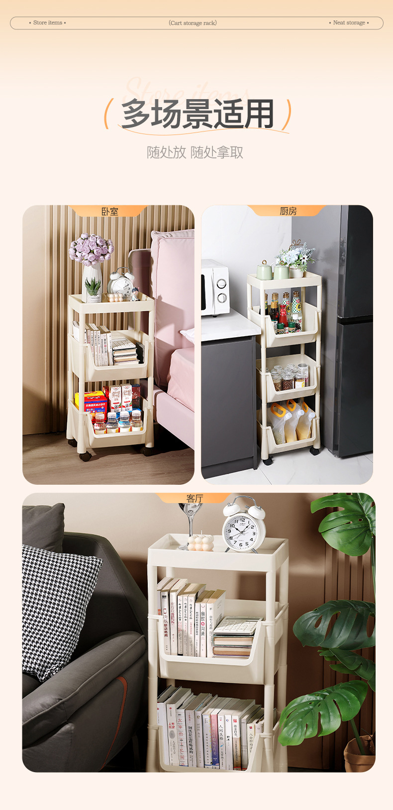 트롤리 수납 랙 가정용 테이블 옆 정리 및 수납 바닥형 다층 이동식 대용량 수납 랙스토어 가기