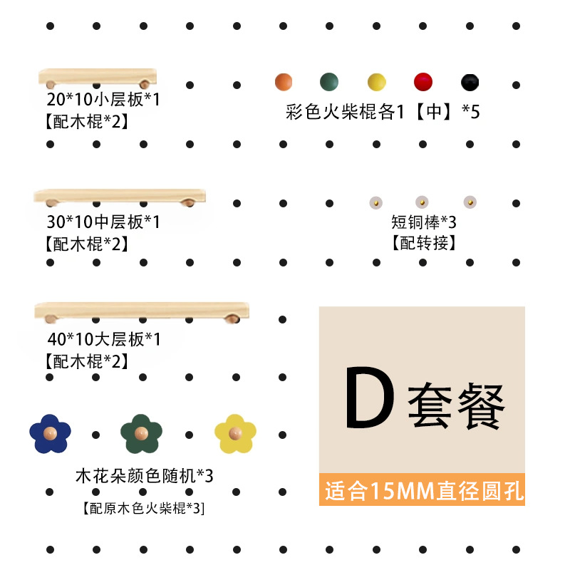 홀 보드 액세서리, 대형 성냥 막대, 둥근 구멍, 나무 막대, 칸막이, 랙, 후크, 펜던트, 목재 보관함스토어 가기