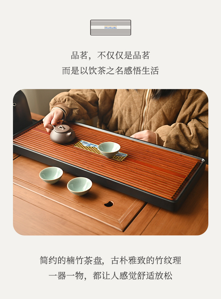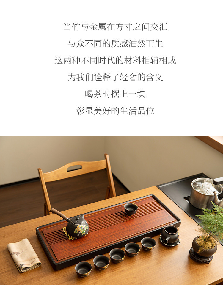 Xiangfu 대나무 차 트레이 배수 새로운 중국 스타일 복고풍 간단한 빛 럭셔리 차 테이블 홈 티 룸 건조 버블 트레이 차 세트