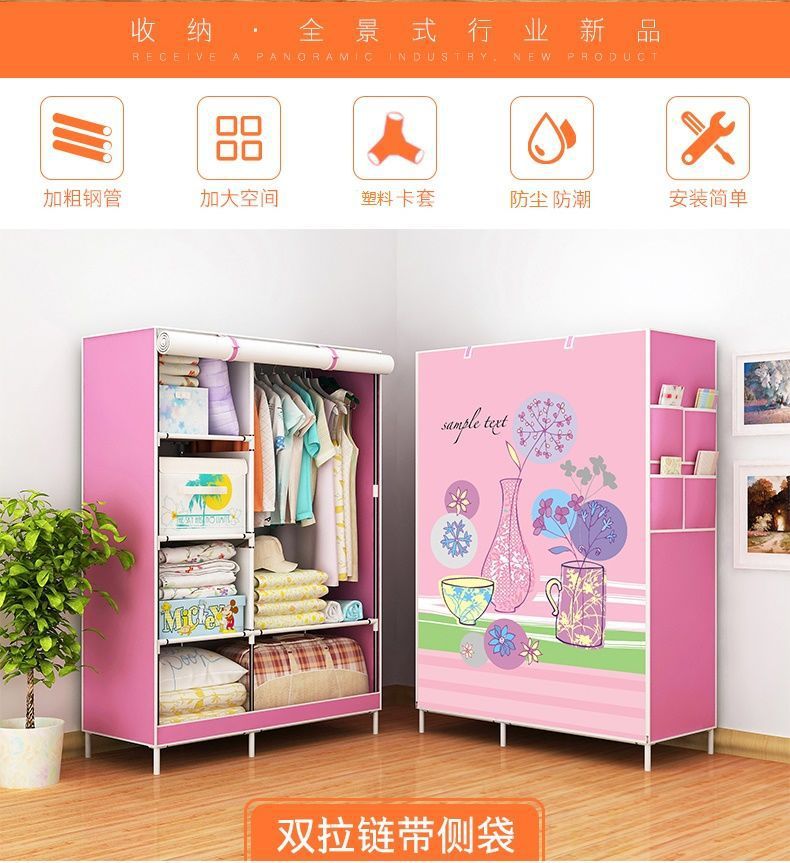 간단한 옷장 싱글 더블 행잉 옷장 강철 파이프 조립 간단한 조립 수납 및 정리 가정용 간단한 Yunzhimin스토어 가기