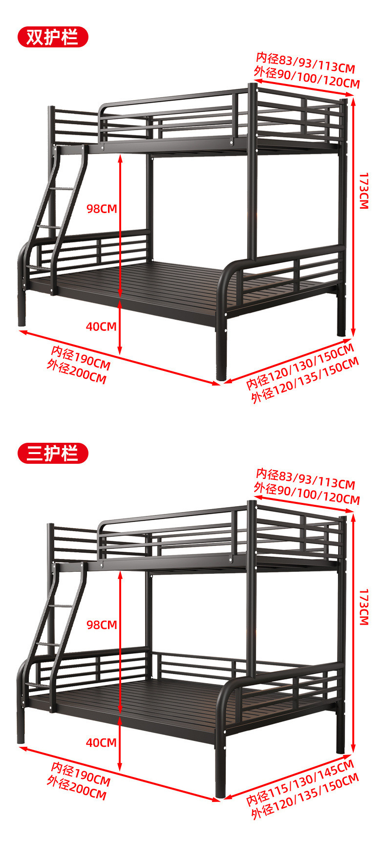 • 상부 침대 폭 90cm, 하부 침대 폭 120cm