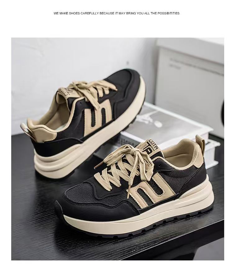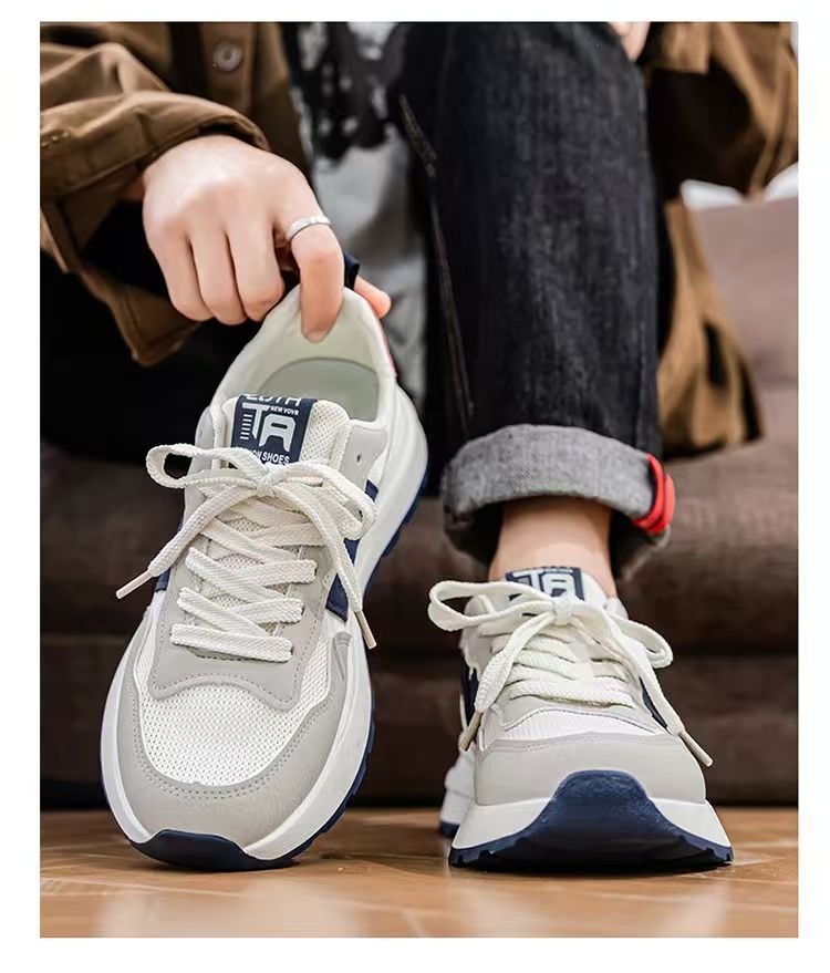 남성 신발 2025 새로운 봄, 여름 메쉬 통기성 다목적 캐주얼 스포츠 신발 남성 러닝 두꺼운 밑창 학생 아빠 신발스토어 가기