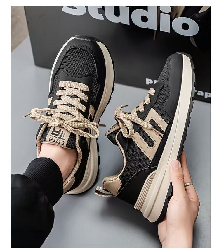 남성 신발 2025 새로운 봄, 여름 메쉬 통기성 다목적 캐주얼 스포츠 신발 남성 러닝 두꺼운 밑창 학생 아빠 신발
