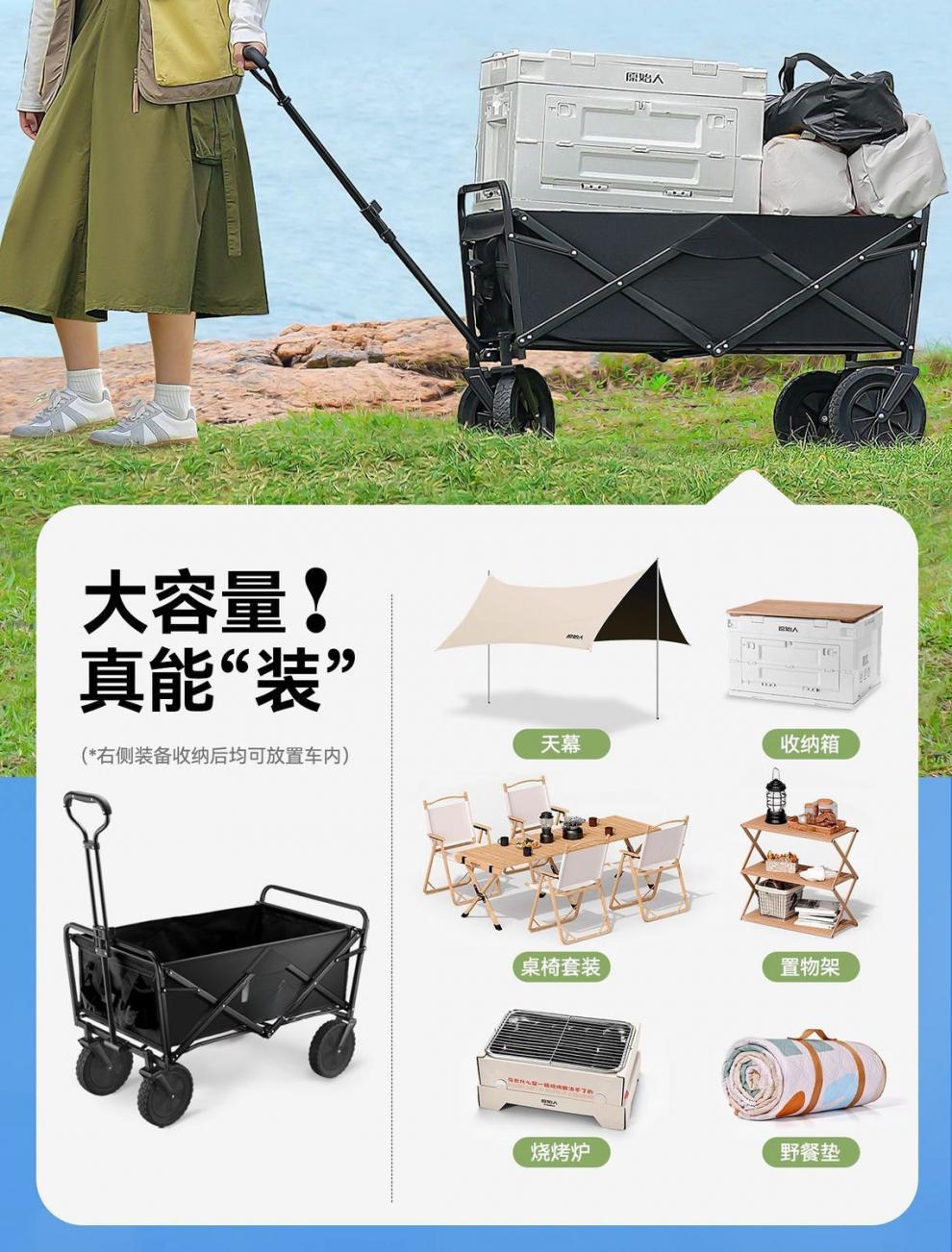 길가에 펼치는 탁자, 원시인 트롤리, 캠핑 트롤리, 접이식 야외 캠프 플랫폼, 캠핑 트레일러스토어 가기