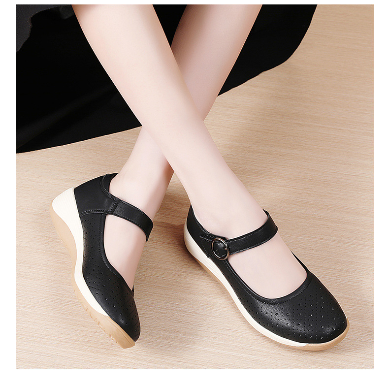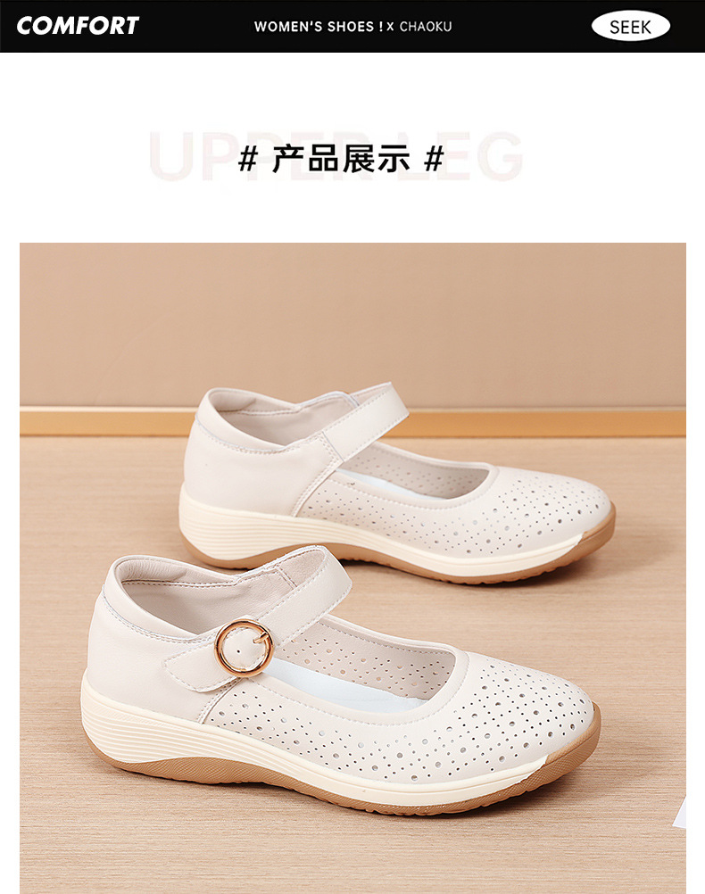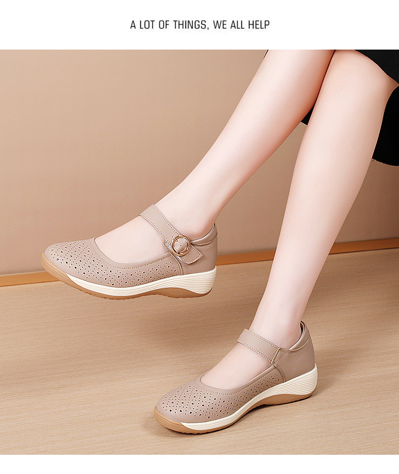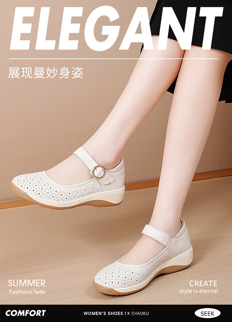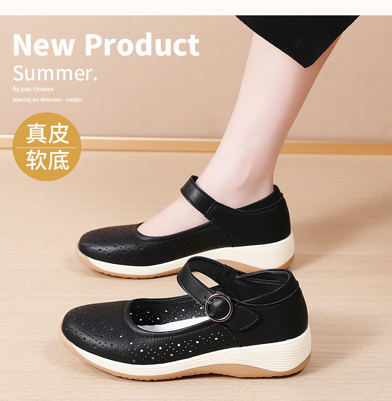 여성용 천연가죽 발가락 벨크로 샌들, 여름 신상 두꺼운 밑창 여성 플랫슈즈, 원라인 스트랩 엄마신발, 나막신스토어 가기