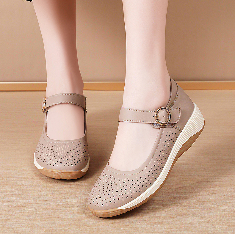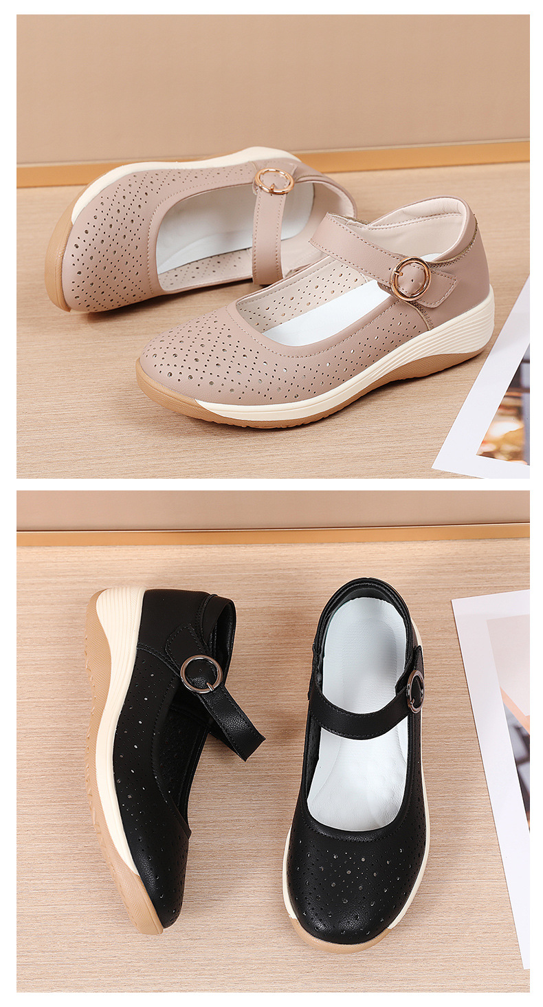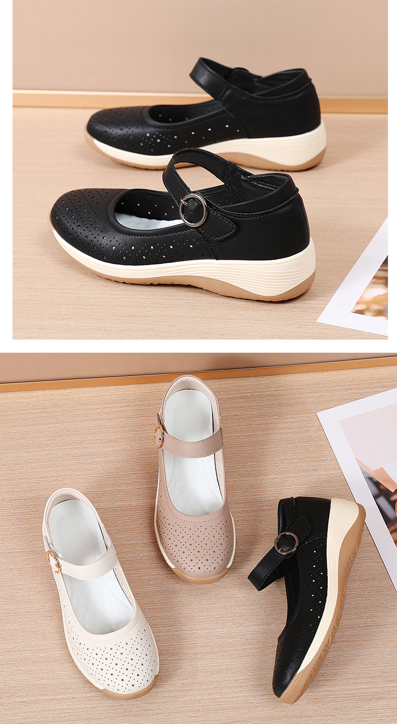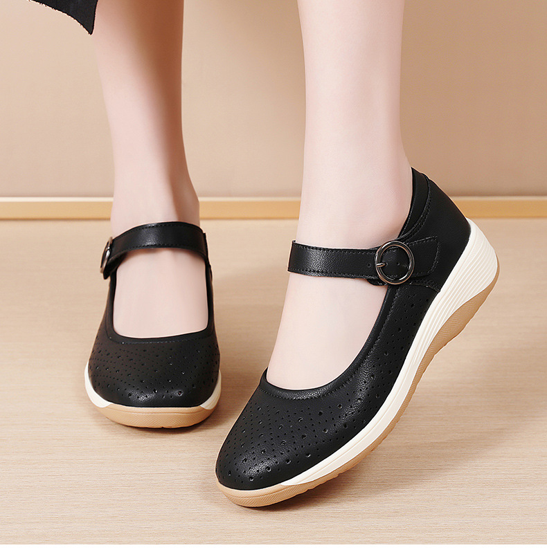 여성용 천연가죽 발가락 벨크로 샌들, 여름 신상 두꺼운 밑창 여성 플랫슈즈, 원라인 스트랩 엄마신발, 나막신스토어 가기