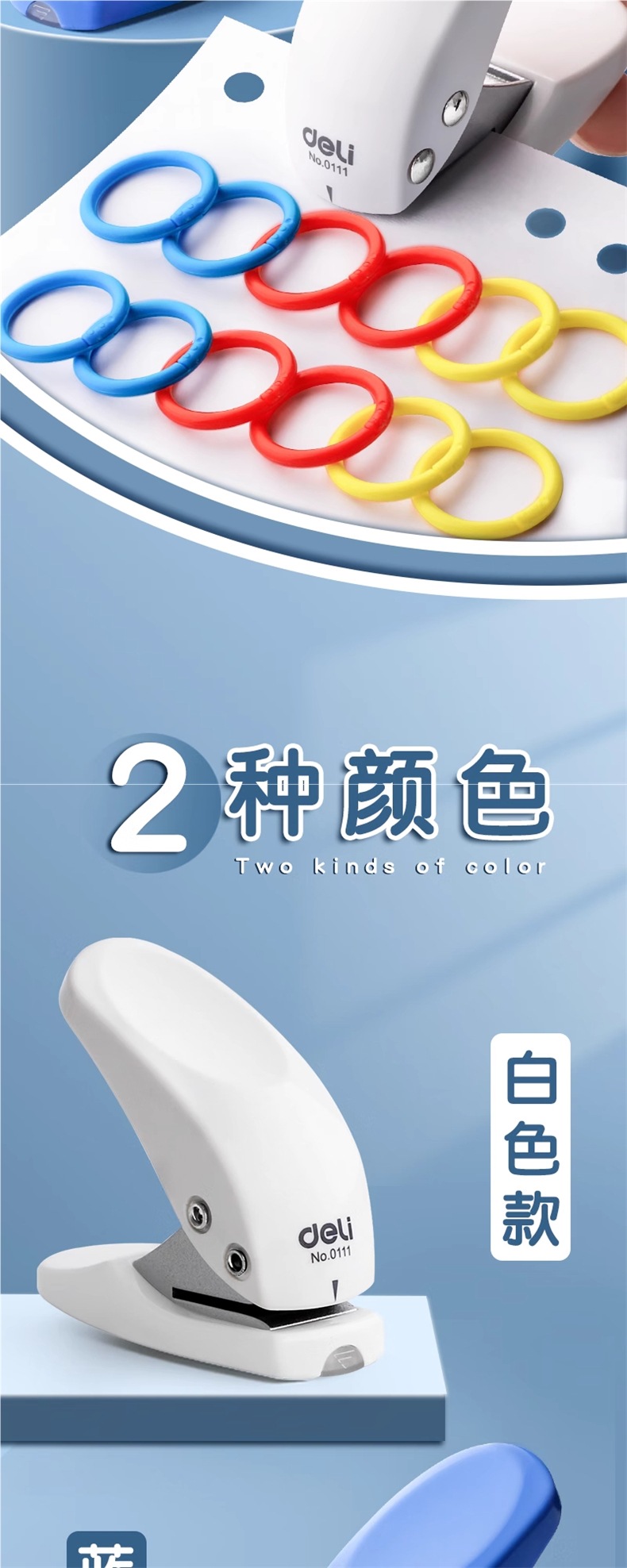 델리 단일 홀 펀처, 소형 펀처, 바인딩 링, 루스리프 북 링 홀, 종이 파일 구멍 뚫기