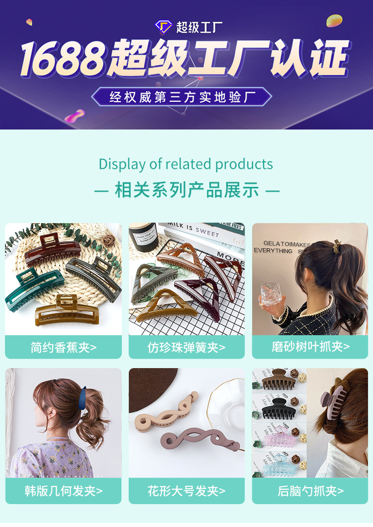 여성용 심플 반투명 스프링 헤어핀, 뒷머리 반묶음 헤어핀 8.5cm 사각머리 스프링 스틸 클립스토어 가기