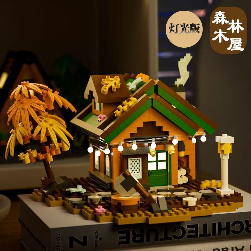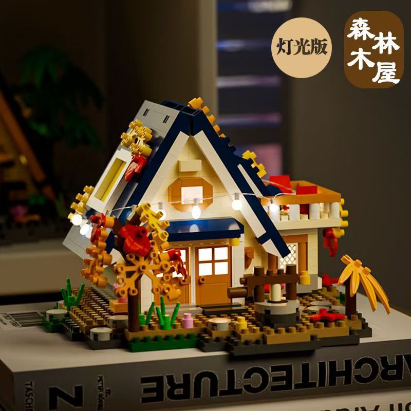 매직 벽돌 마이크로 입자 복고풍 숲 나무 집 소년과 소녀 장난감 선물 데스크탑 장식품 조립 빌딩 블록스토어 가기