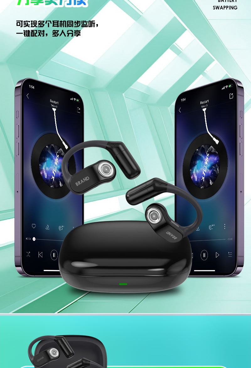 2025 새로운 무선 중저음 블루투스 헤드셋 긴 배터리 수명 헤드셋 개인 모델 귀고리 스포츠 교체 블루투스 헤드셋