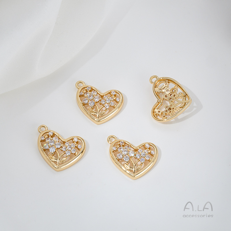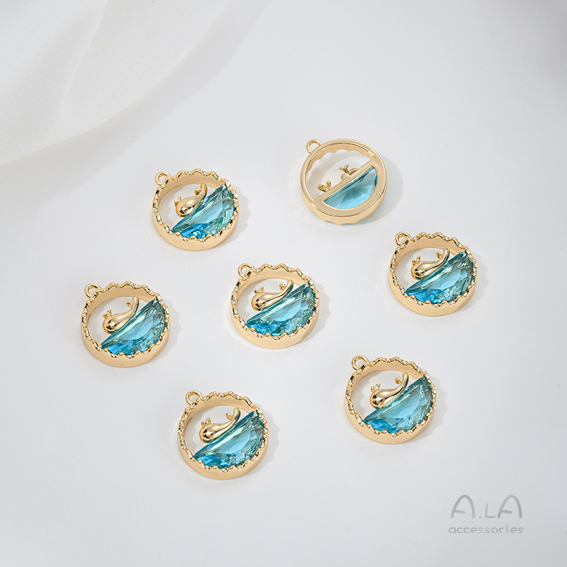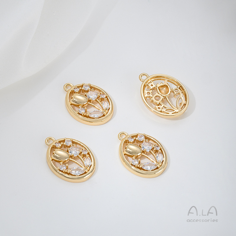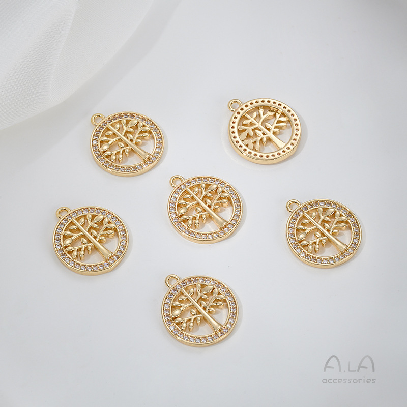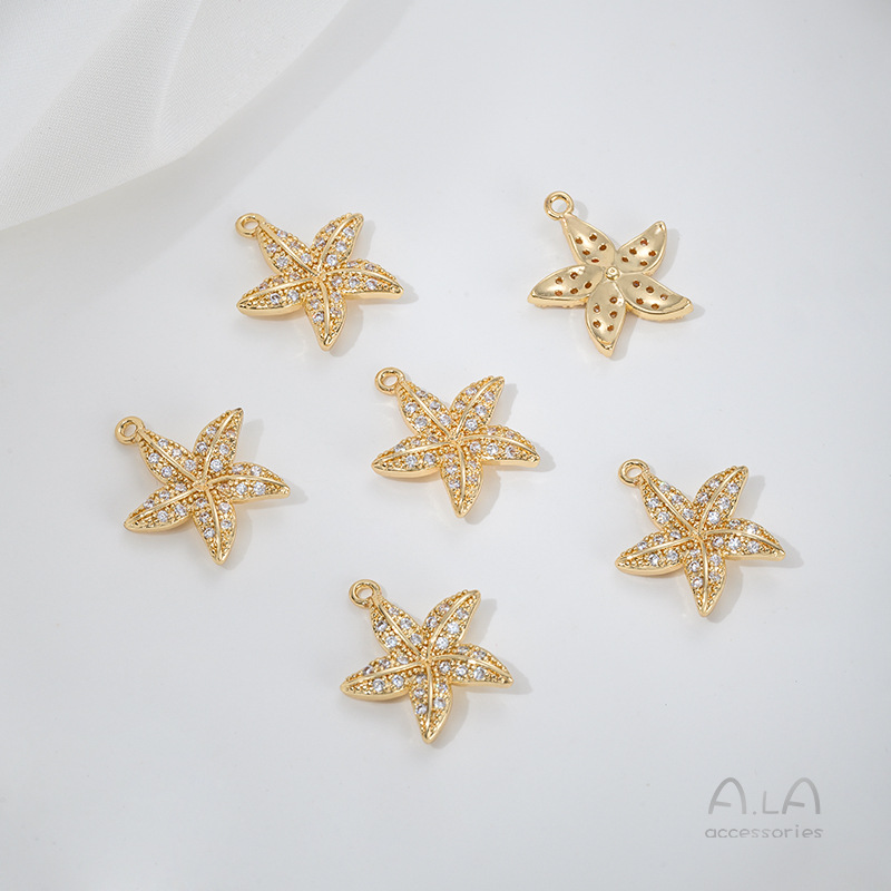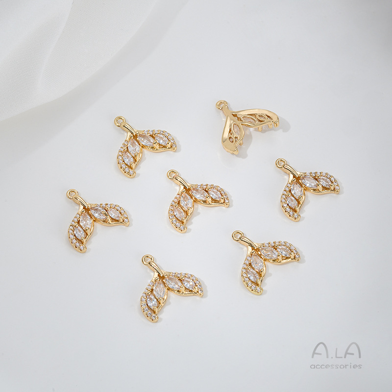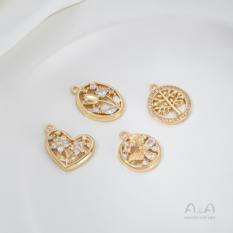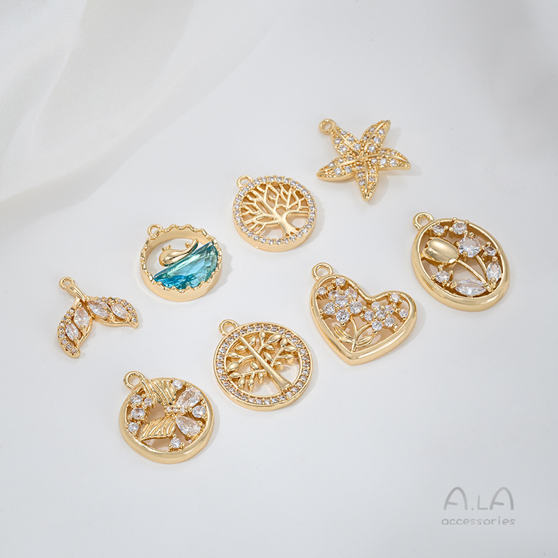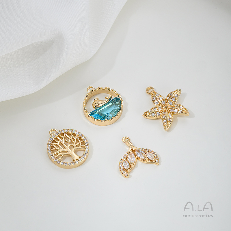 전기 도금 14K 진짜 금 상감 지르콘 고래 꼬리 불가사리 생명의 나무 튤립 펜던트 diy 팔찌 목걸이 펜던트스토어 가기