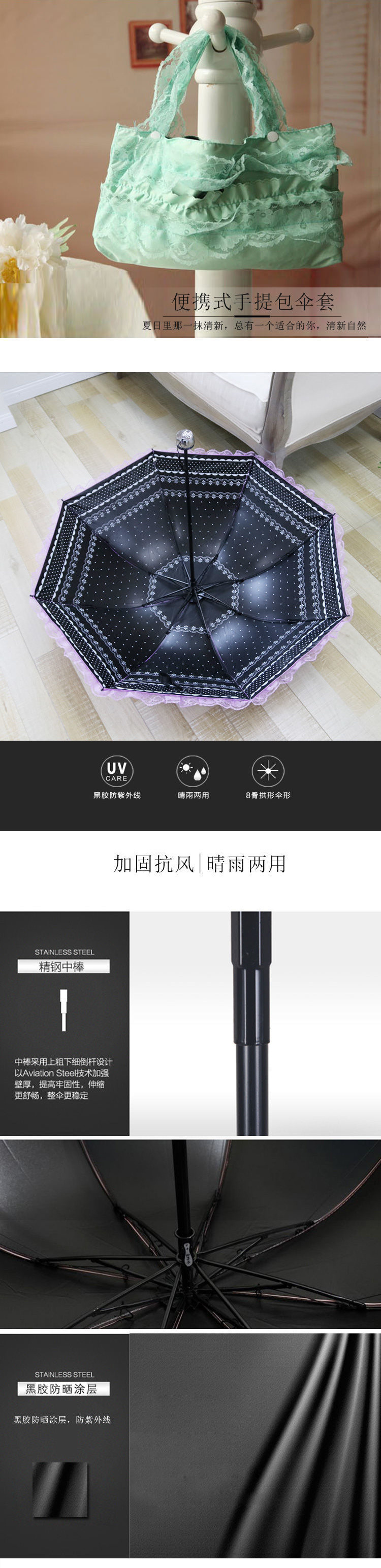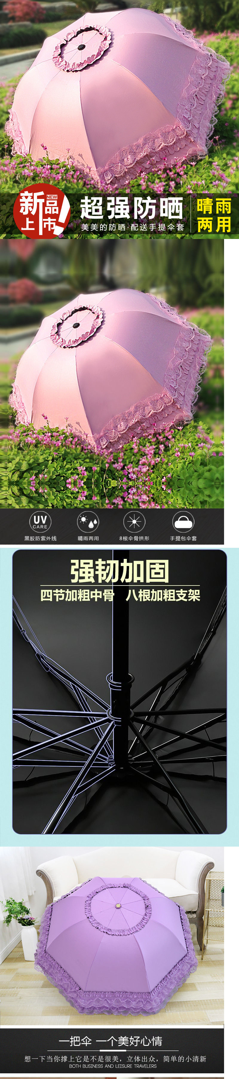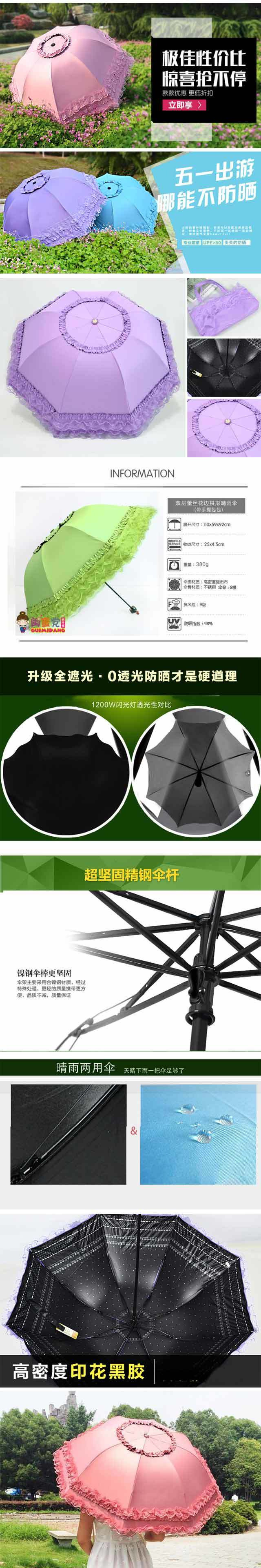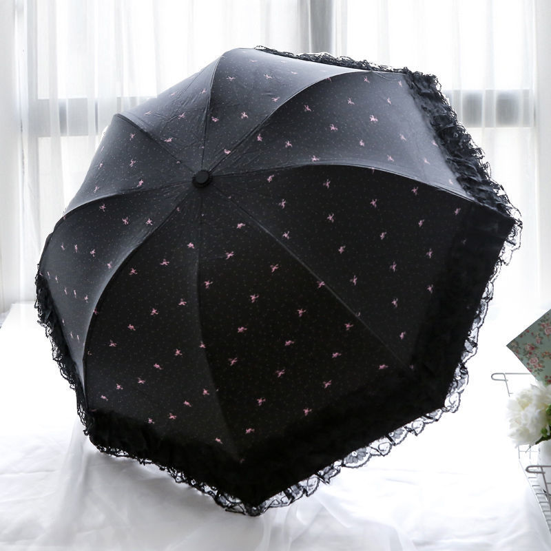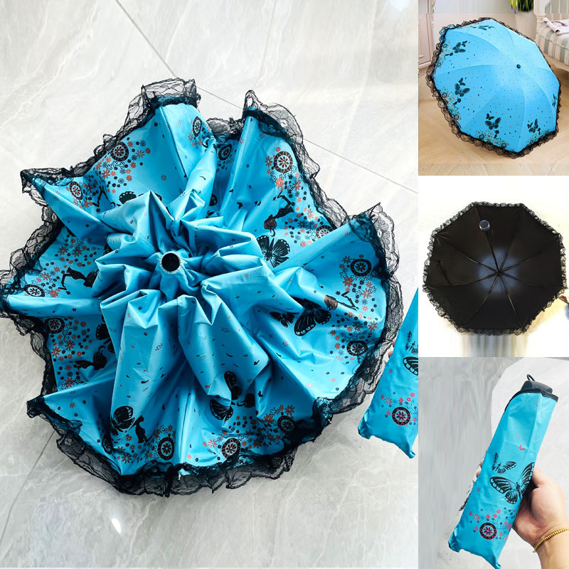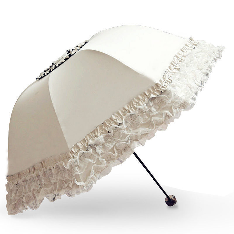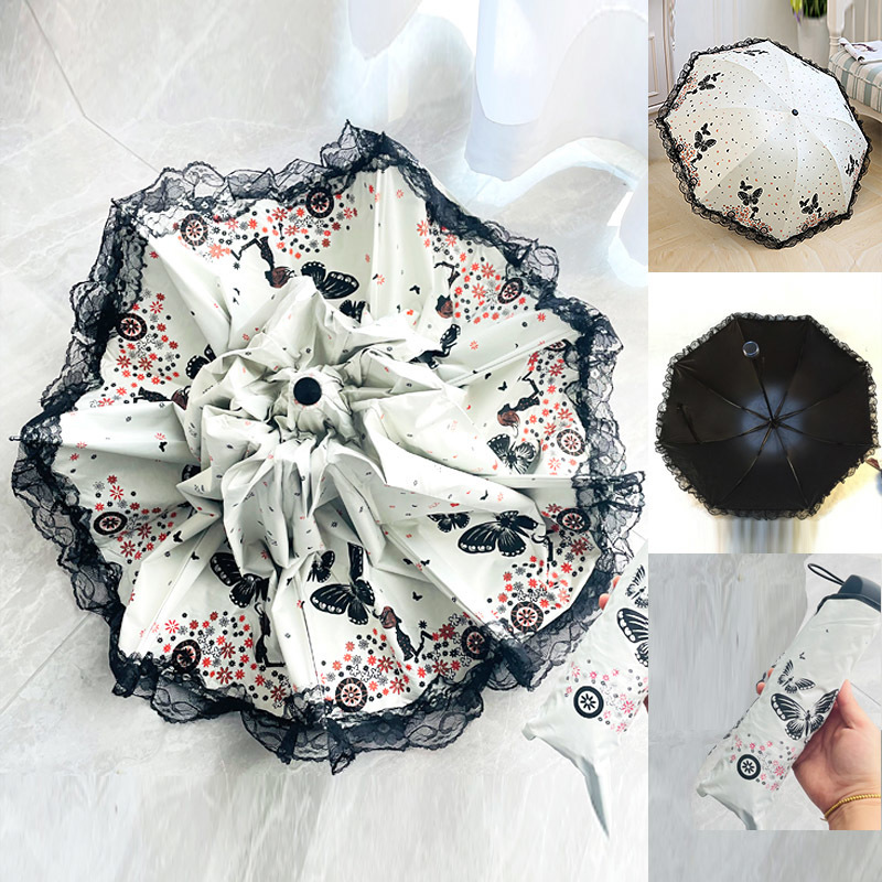 태양 우산 여성용 자외선 방지 우산, 비 또는 빛 양산 우산, 접이식 귀여운 레이스 비닐 학생 우산스토어 가기