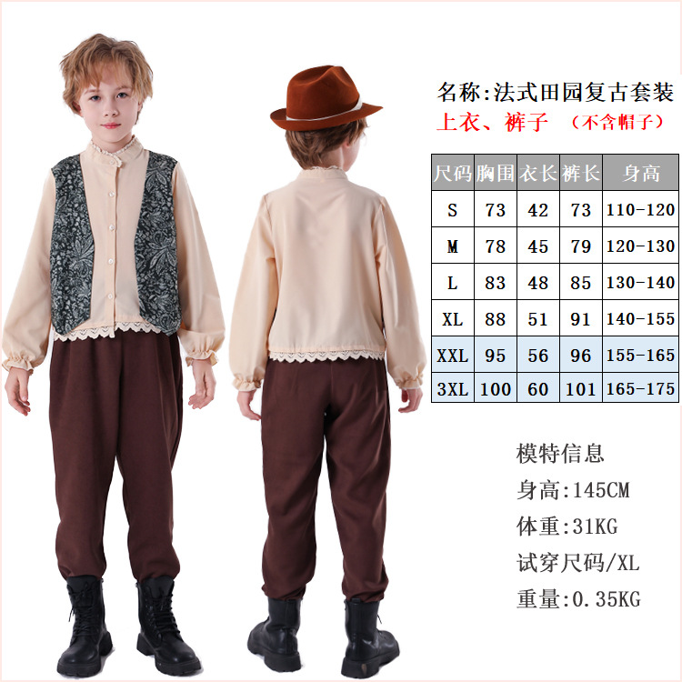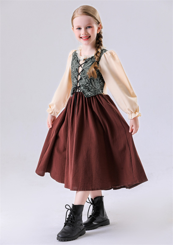 영국 스타일 어린이 중세 무대 공연 의상 유럽 프랑스 땅 주머니 소녀 코스프레 의상 재고 있음