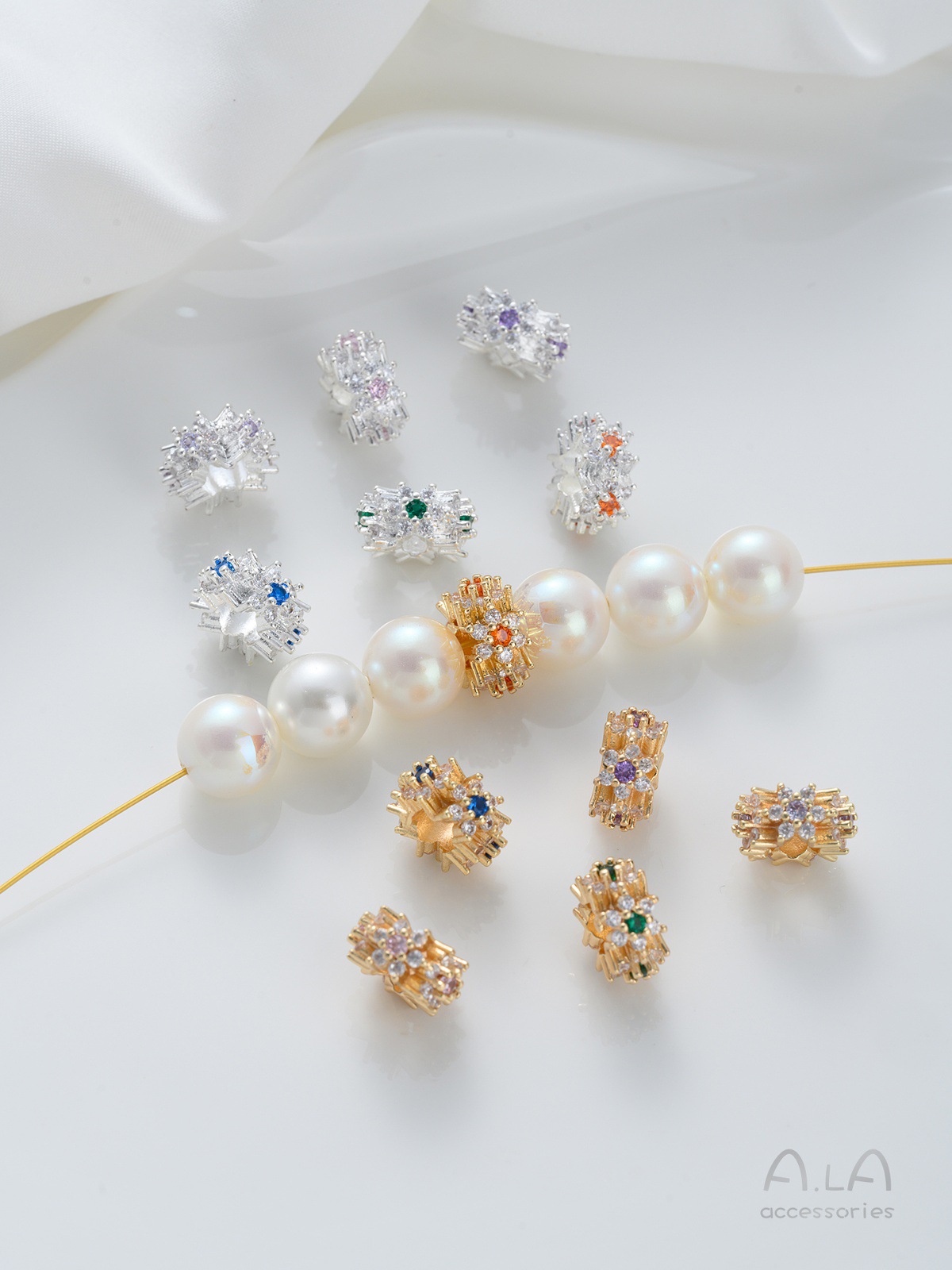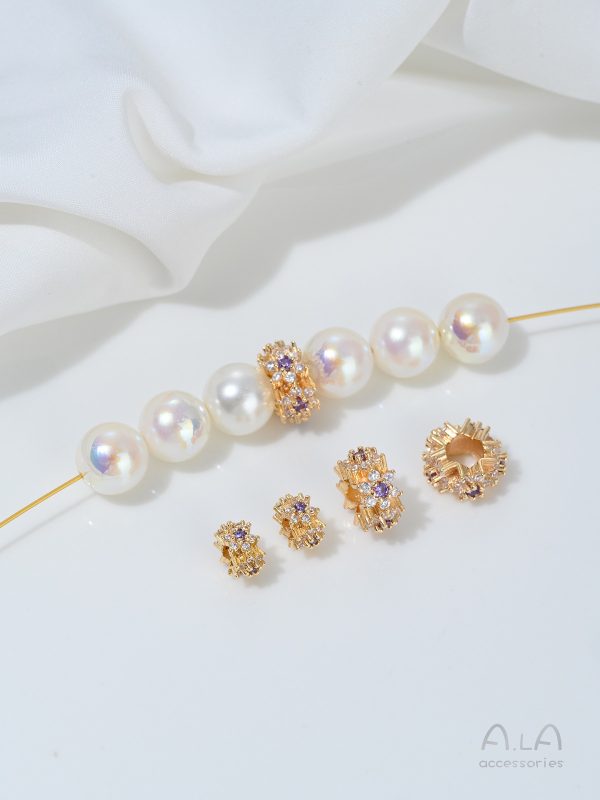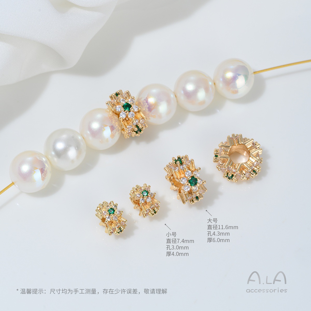 14K 금도금 전기 도금 상감 지르콘 꽃 대형 구멍 구슬 DIY 수제 목걸이 팔찌 액세서리 버킷 비즈 트랜스퍼 비즈스토어 가기