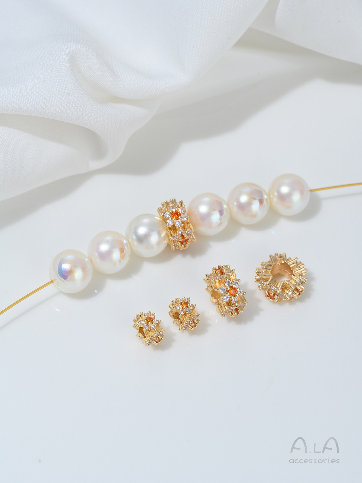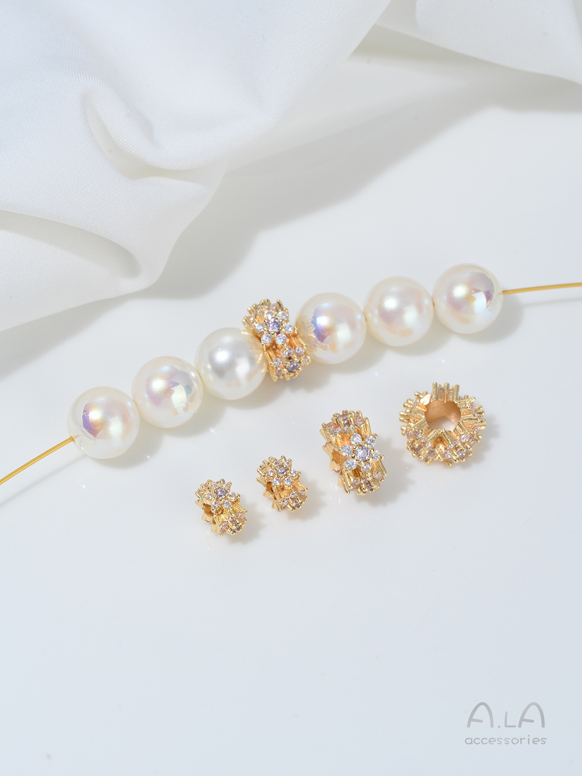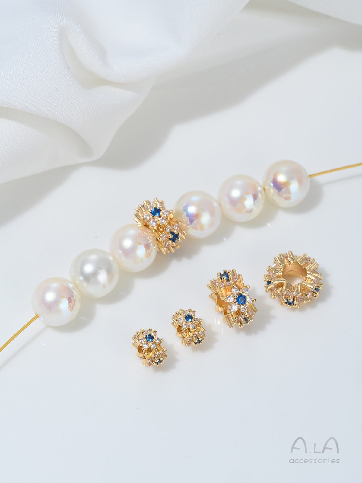 14K 금도금 전기 도금 상감 지르콘 꽃 대형 구멍 구슬 DIY 수제 목걸이 팔찌 액세서리 버킷 비즈 트랜스퍼 비즈스토어 가기