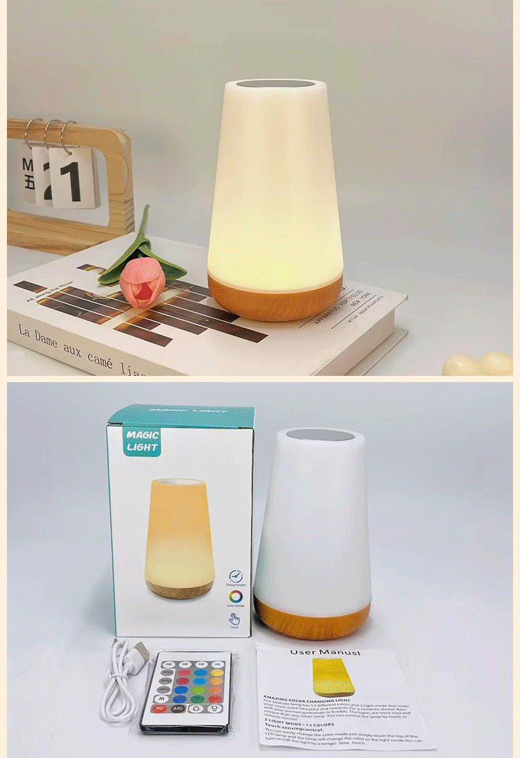 아마존 리모컨 우드 패턴 조광 가능 충전식 13 소형 야간등 침대 옆 램프 학습용 조광 테이블 램프 터치 분위기등스토어 가기
