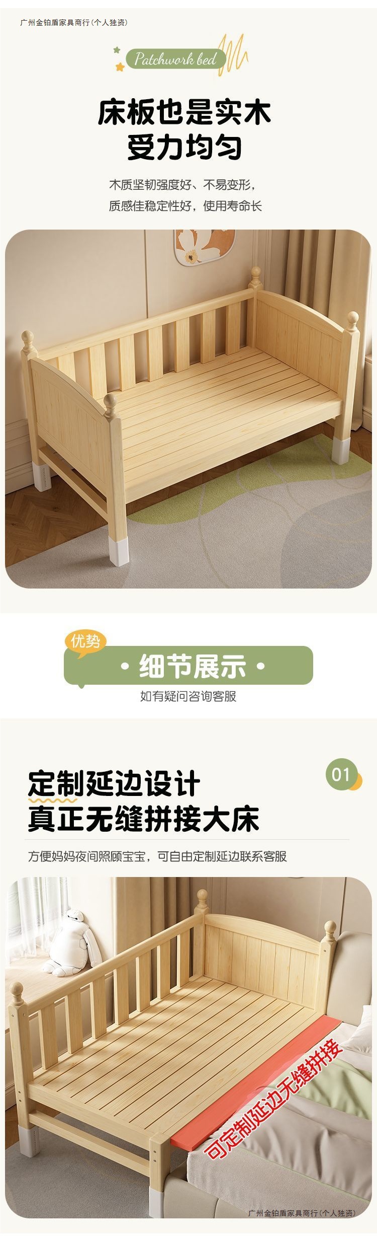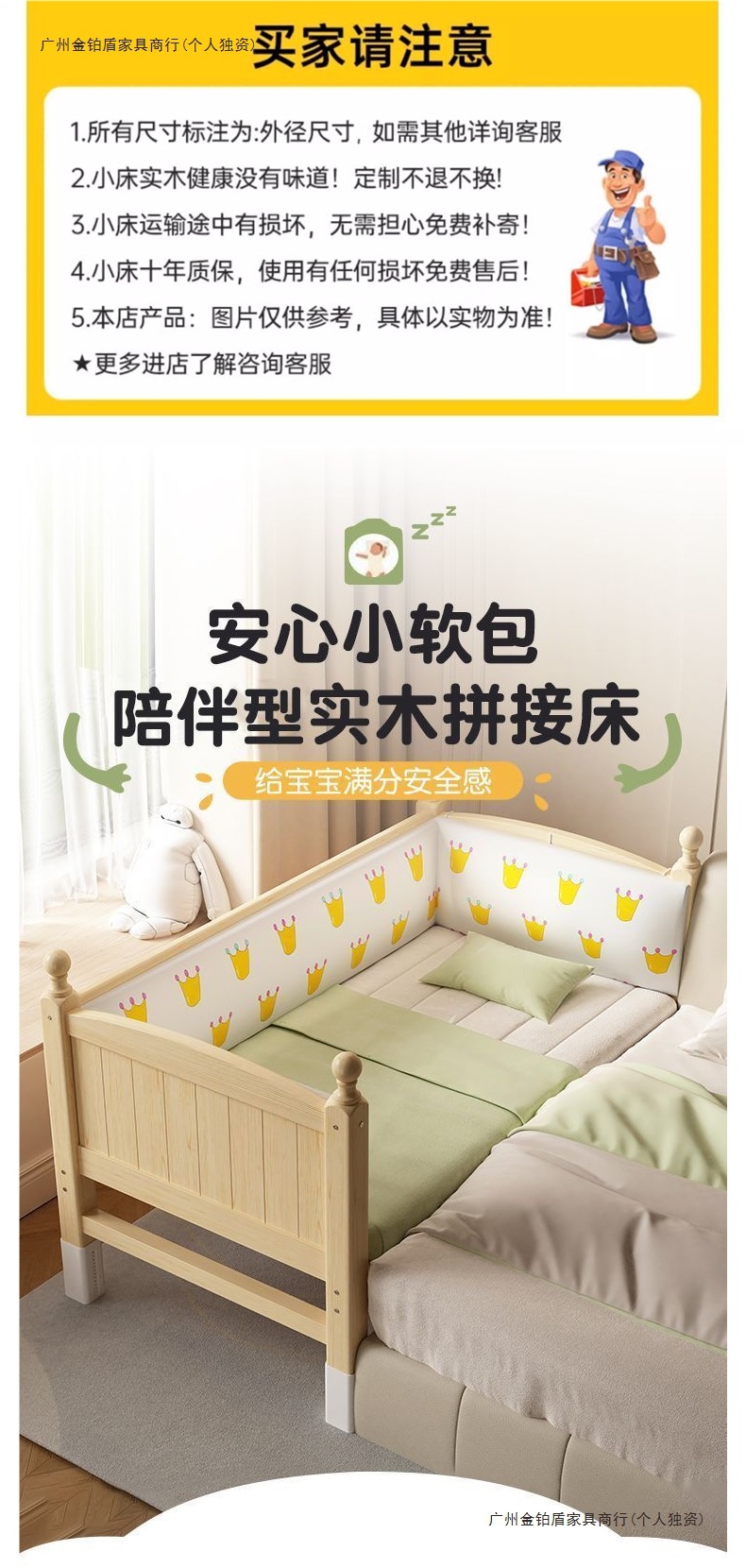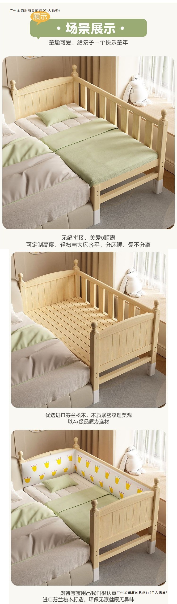 어린이 침대 접합 침대 원목 유아용 침대 아기 침대 사이드 침대 확장 대형 침대 옆 아트리팩트 플랫 침대 접합 침대
