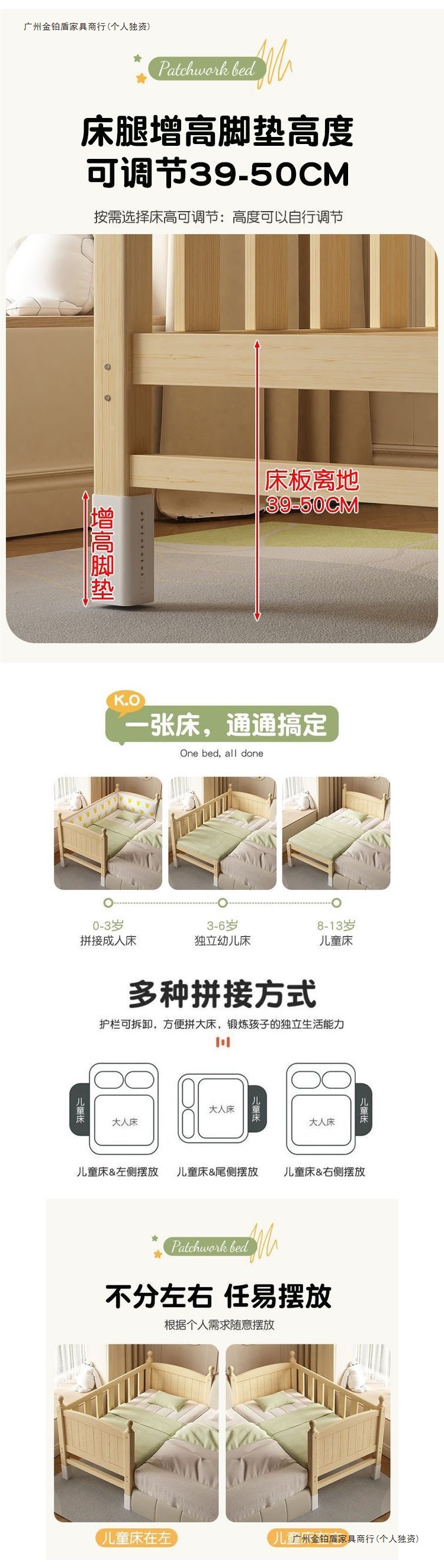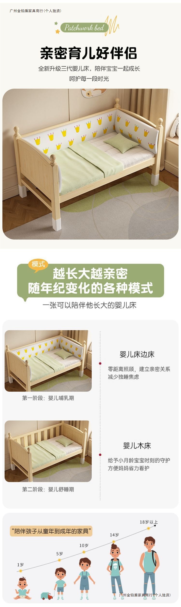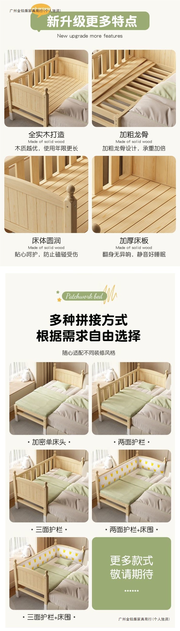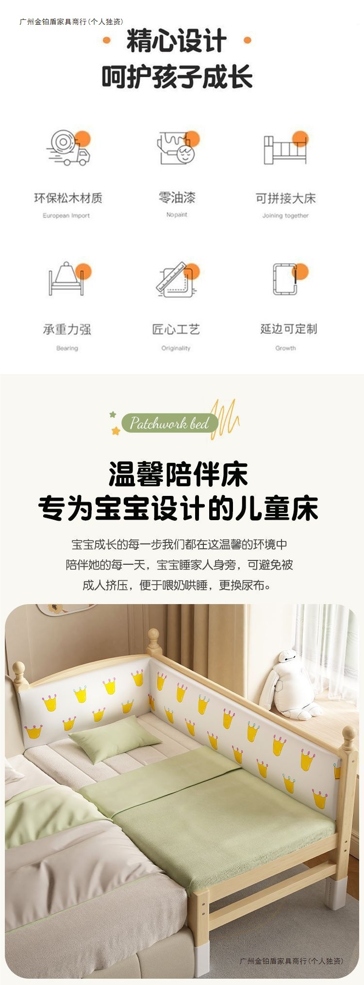 어린이 침대 접합 침대 원목 유아용 침대 아기 침대 사이드 침대 확장 대형 침대 옆 아트리팩트 플랫 침대 접합 침대