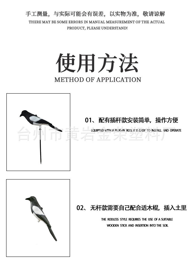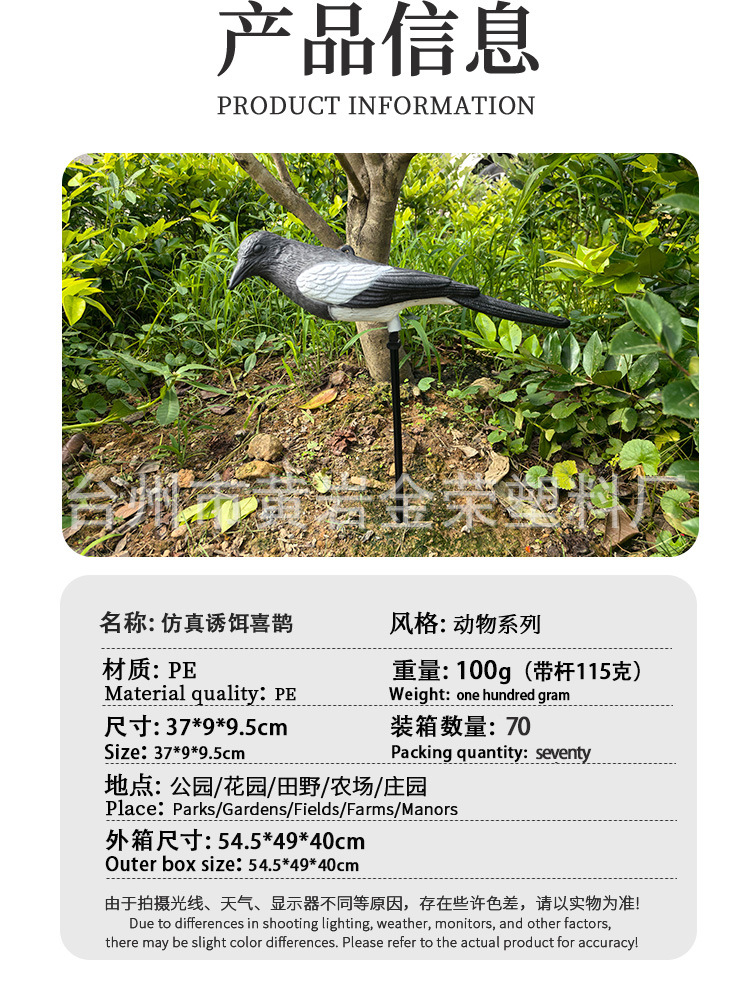 국경 간 인기 판매 목가적 사냥 미끼 가짜 새 야외 시뮬레이션 장식품 현실적인 미끼 동물 까마귀