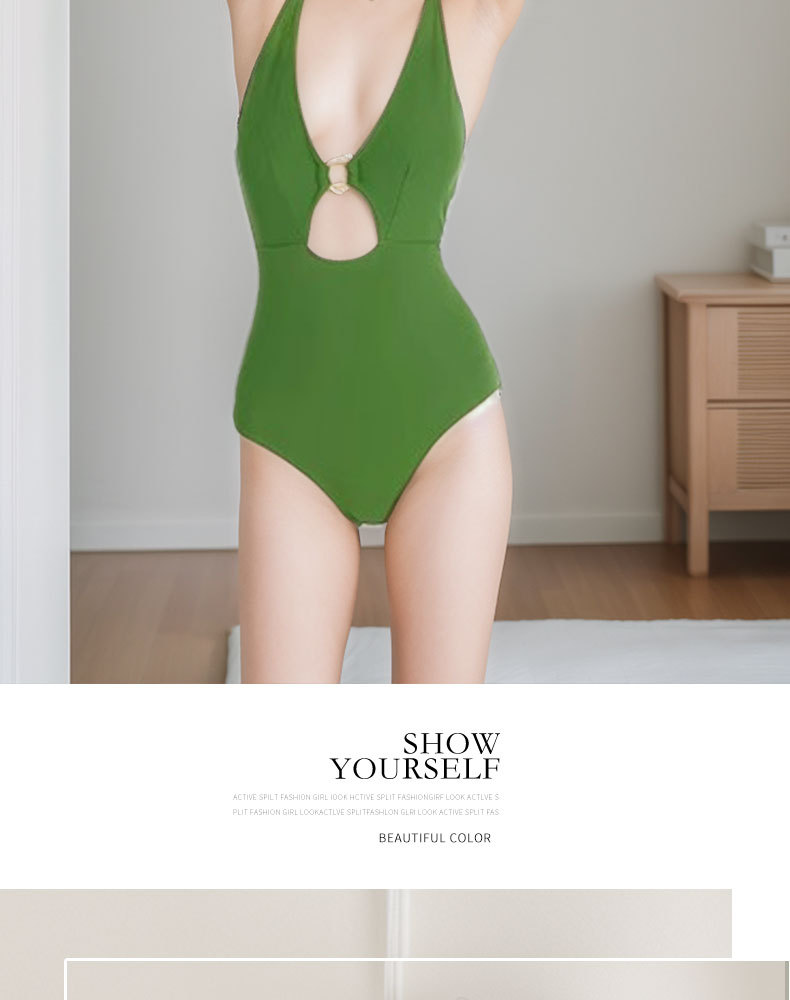 스타들과 같은 스타일의 새로운 삼각형 원피스 수영복 여성용 배를 가려주는 슬림한 온천 해변 휴가 수영복 원피스스토어 가기