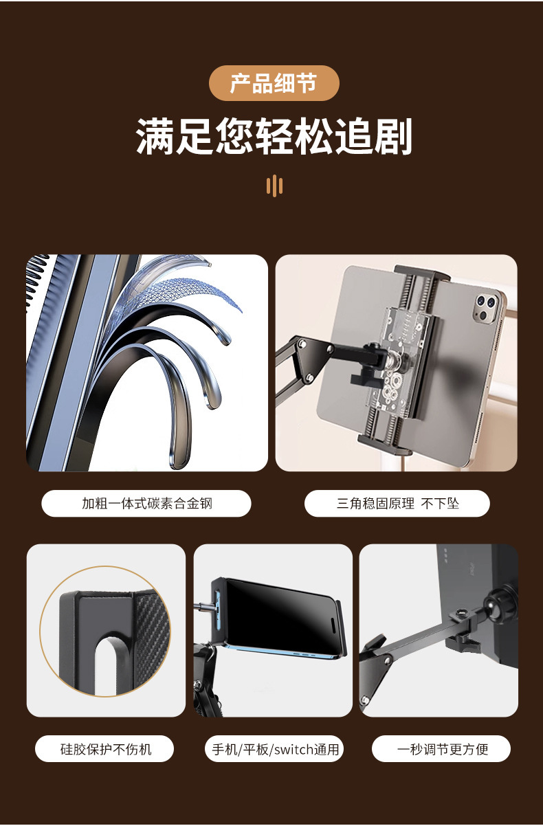 숨겨진 클립 없는 침대 옆 휴대폰 거치대, 데스크탑용, 태블릿 컴퓨터, 라이브 방송, 게으른 사람들을 위한 패드, 클립 없는 접이식스토어 가기