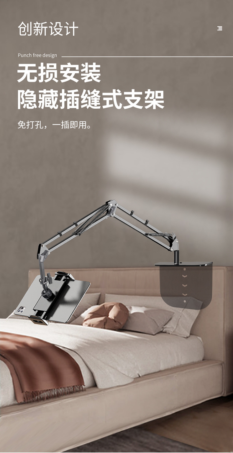 숨겨진 클립 없는 침대 옆 휴대폰 거치대, 데스크탑용, 태블릿 컴퓨터, 라이브 방송, 게으른 사람들을 위한 패드, 클립 없는 접이식