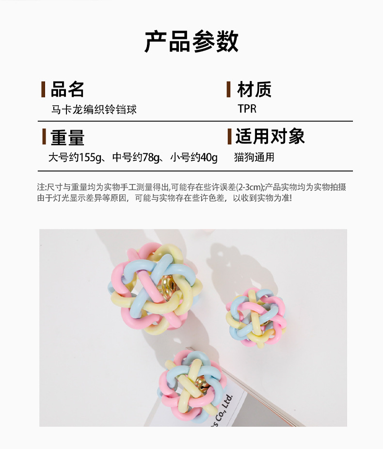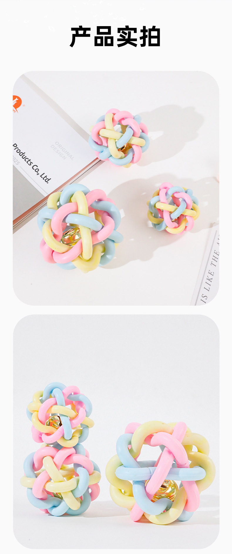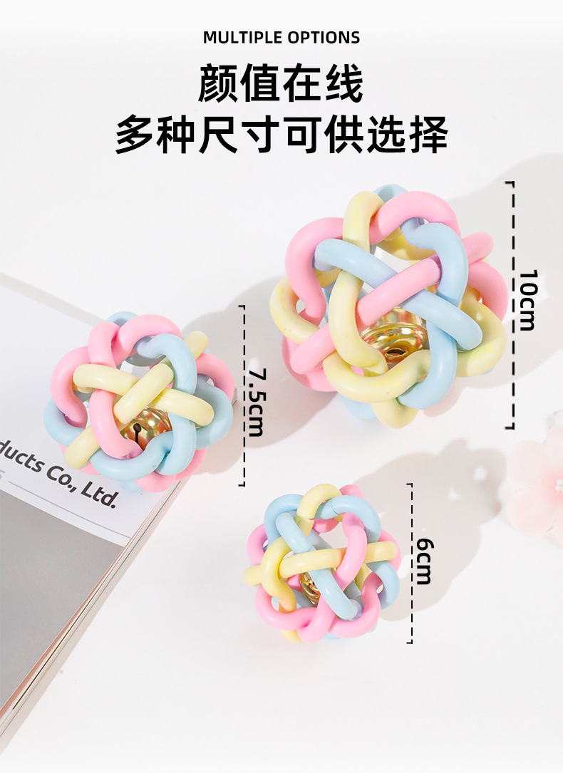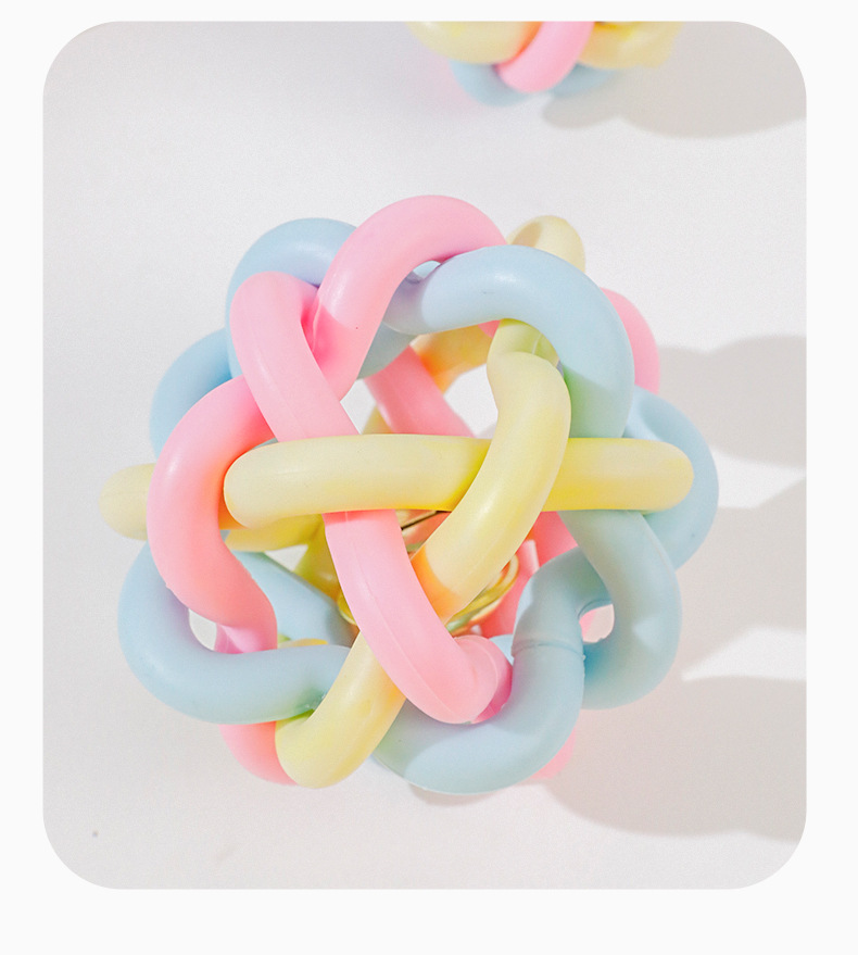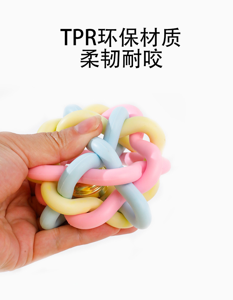 개 장난감 다채로운 벨 공 훈련 대화 형 다채로운 땋은 소리 공 자기 자극 TPR 어금니 애완 동물 장난감