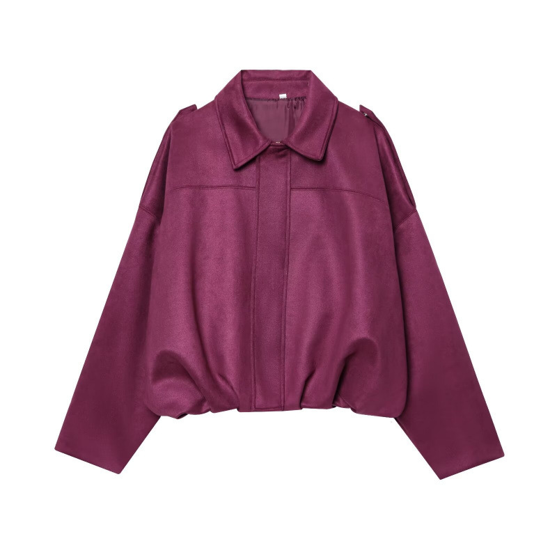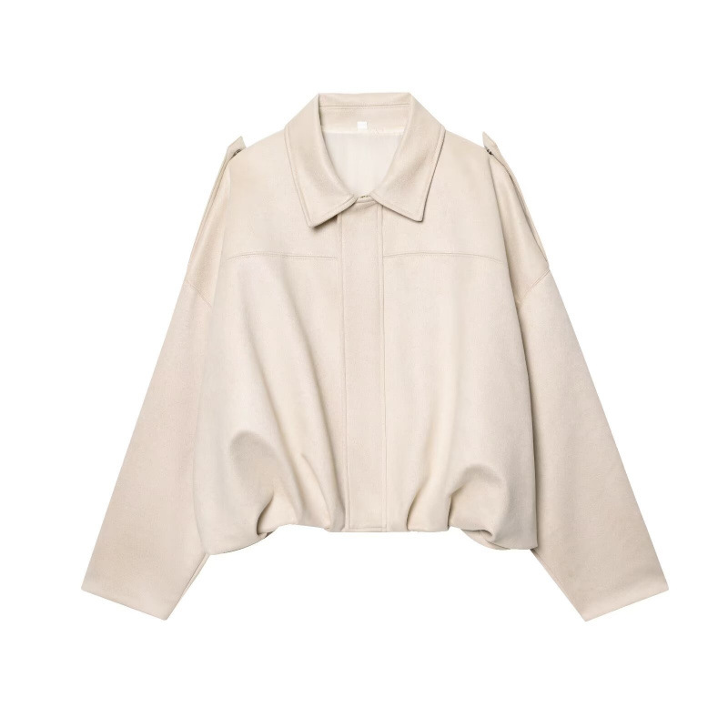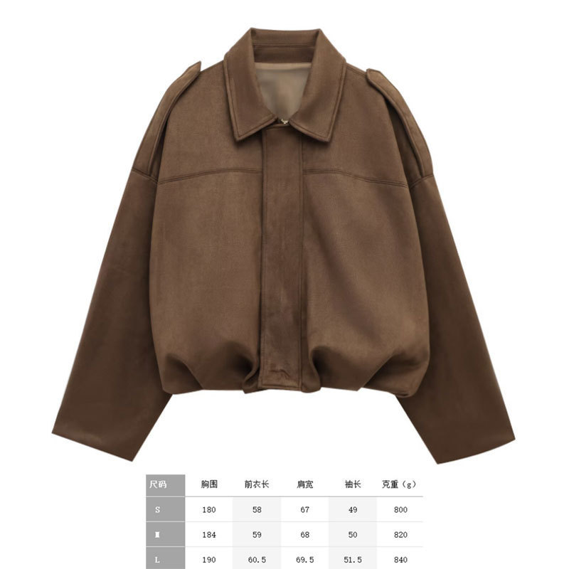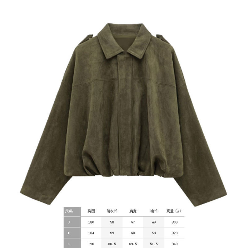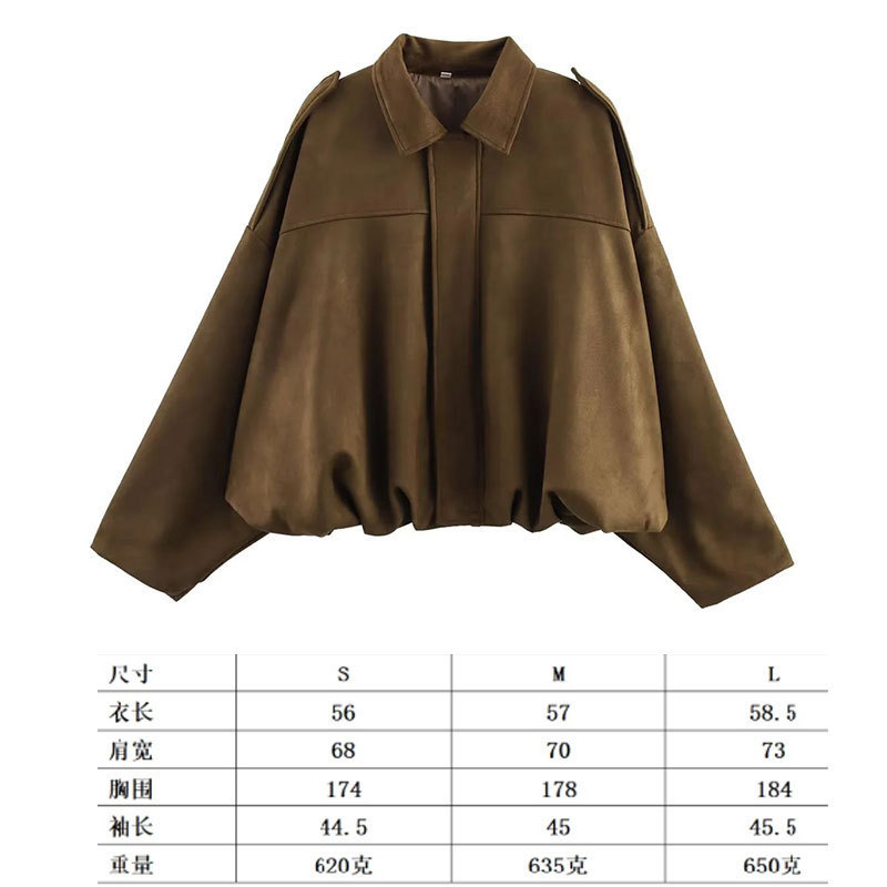 공장 현장 대외 무역 여성 의류 도매 2025 새로운 배트 슬리브 느슨한 스웨이드 질감 폭격기 재킷
