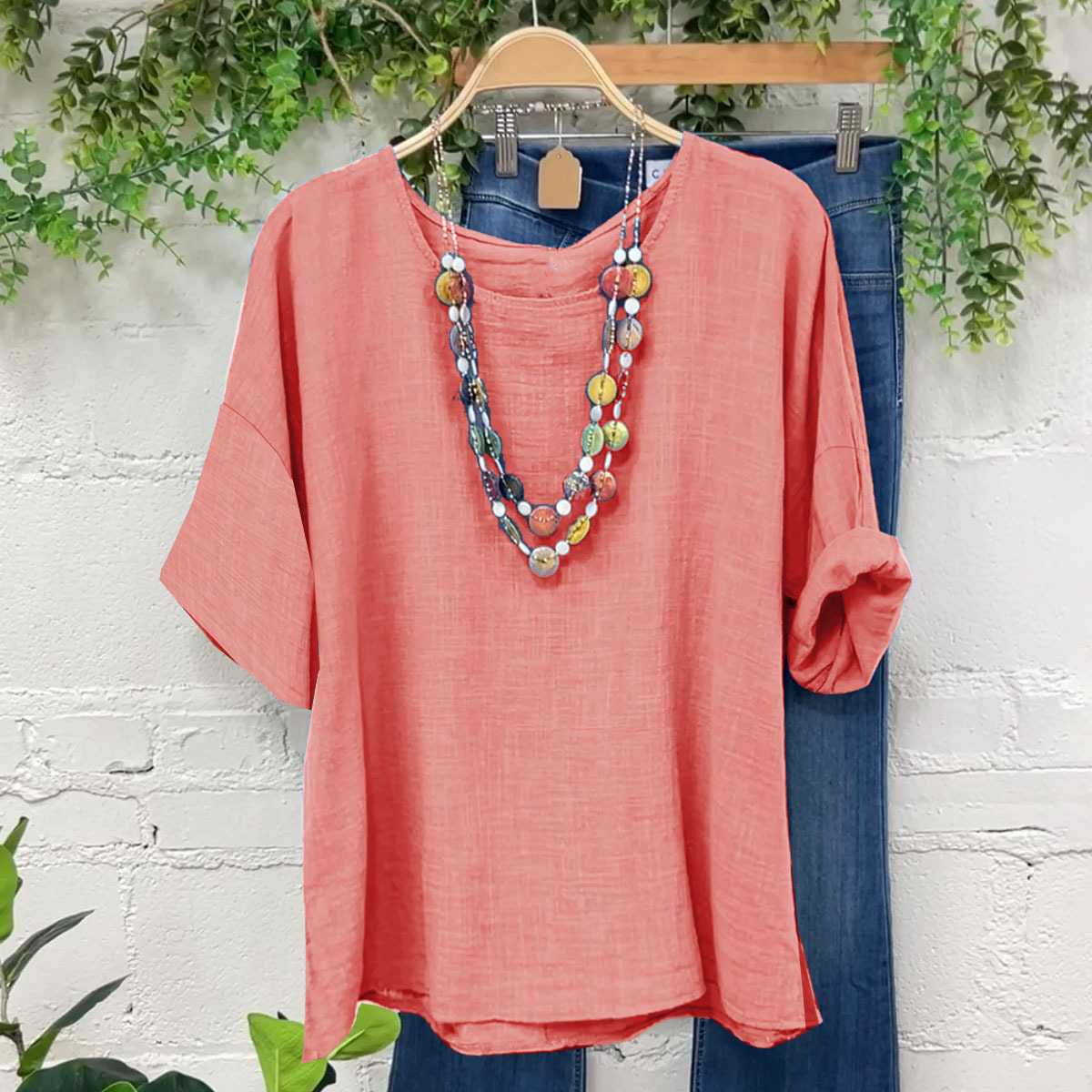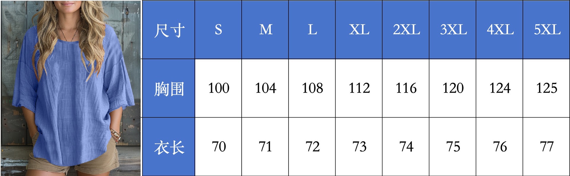 2025 Amazon shein 크로스보더 독립 스테이션 유럽과 미국의 면 및 린넨 라운드 넥 탑 새로운 핫 스타일스토어 가기